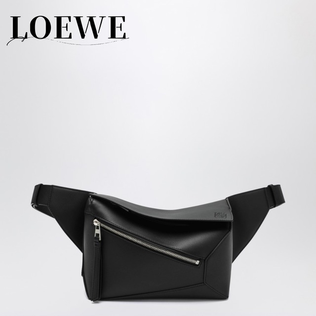 LOEWE パズル柄の小さな黒いウエストバッグ