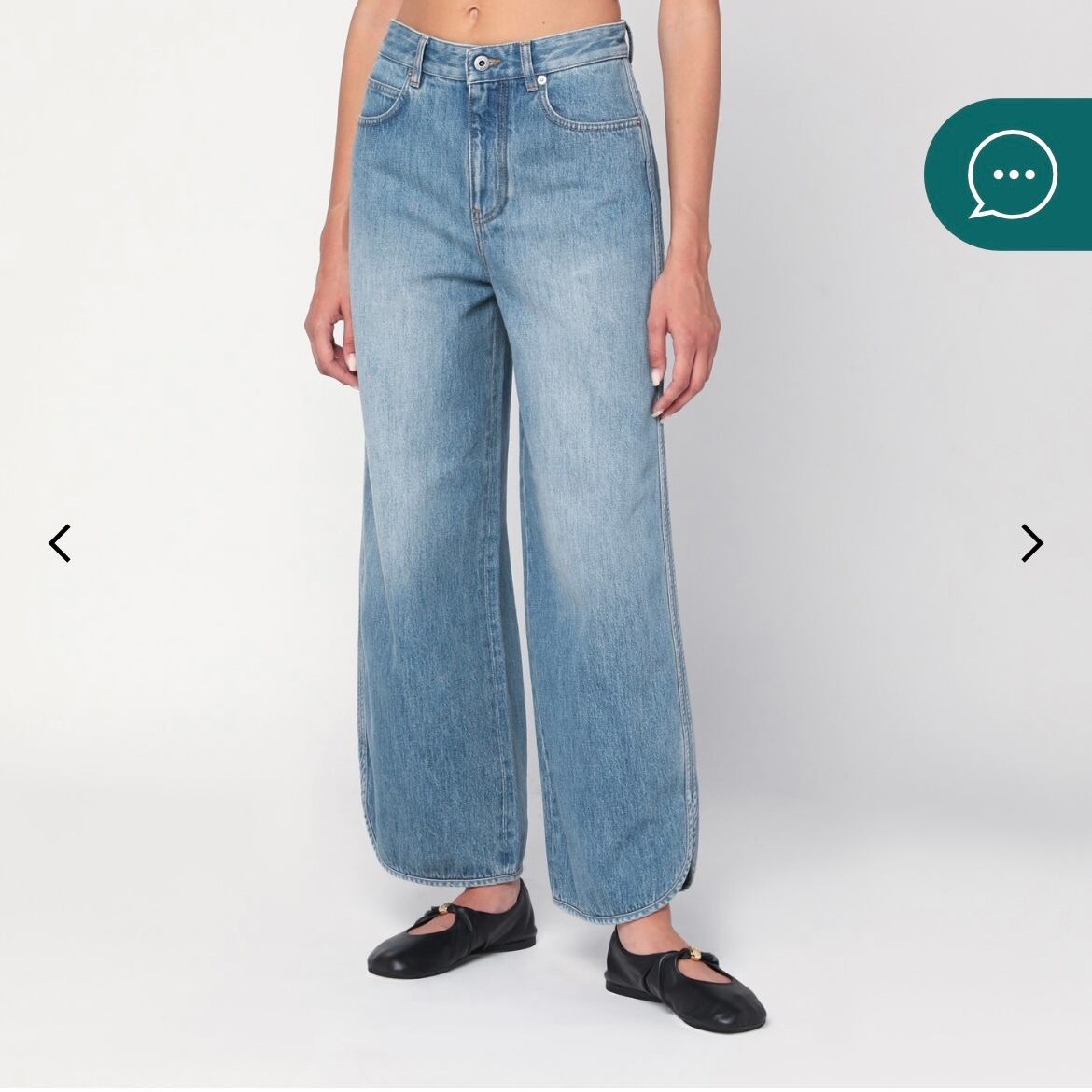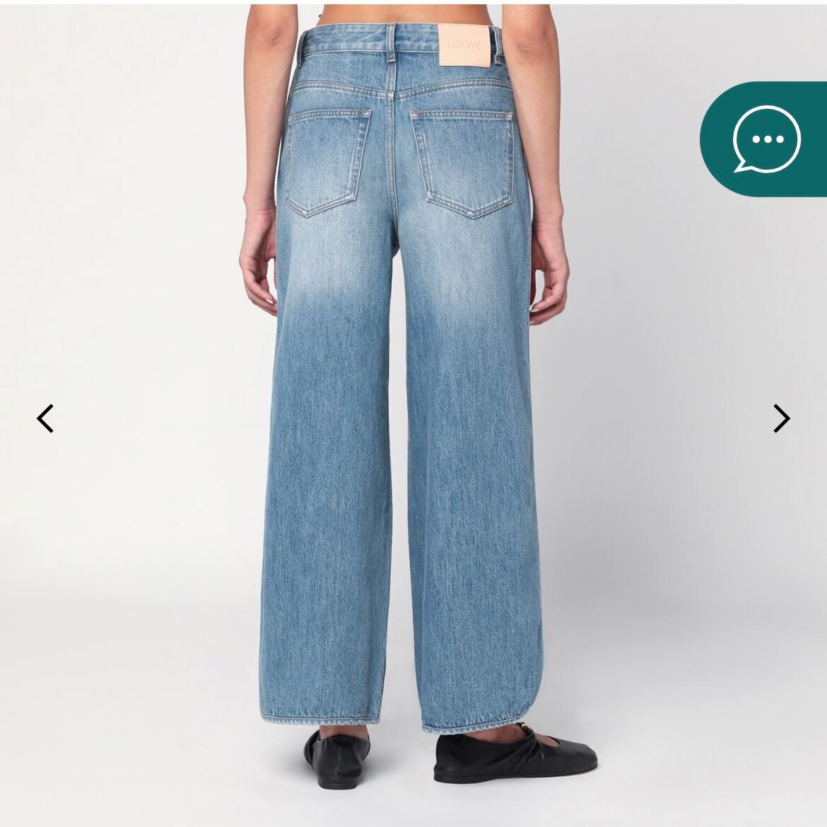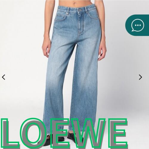 ブルーのコットンデニムを使用したロエベのジーンズ。ボーイフレンド カット、ベルトループ、5つのポケット、背面にエンボスロゴ入りのレザーラベルが特徴 です。