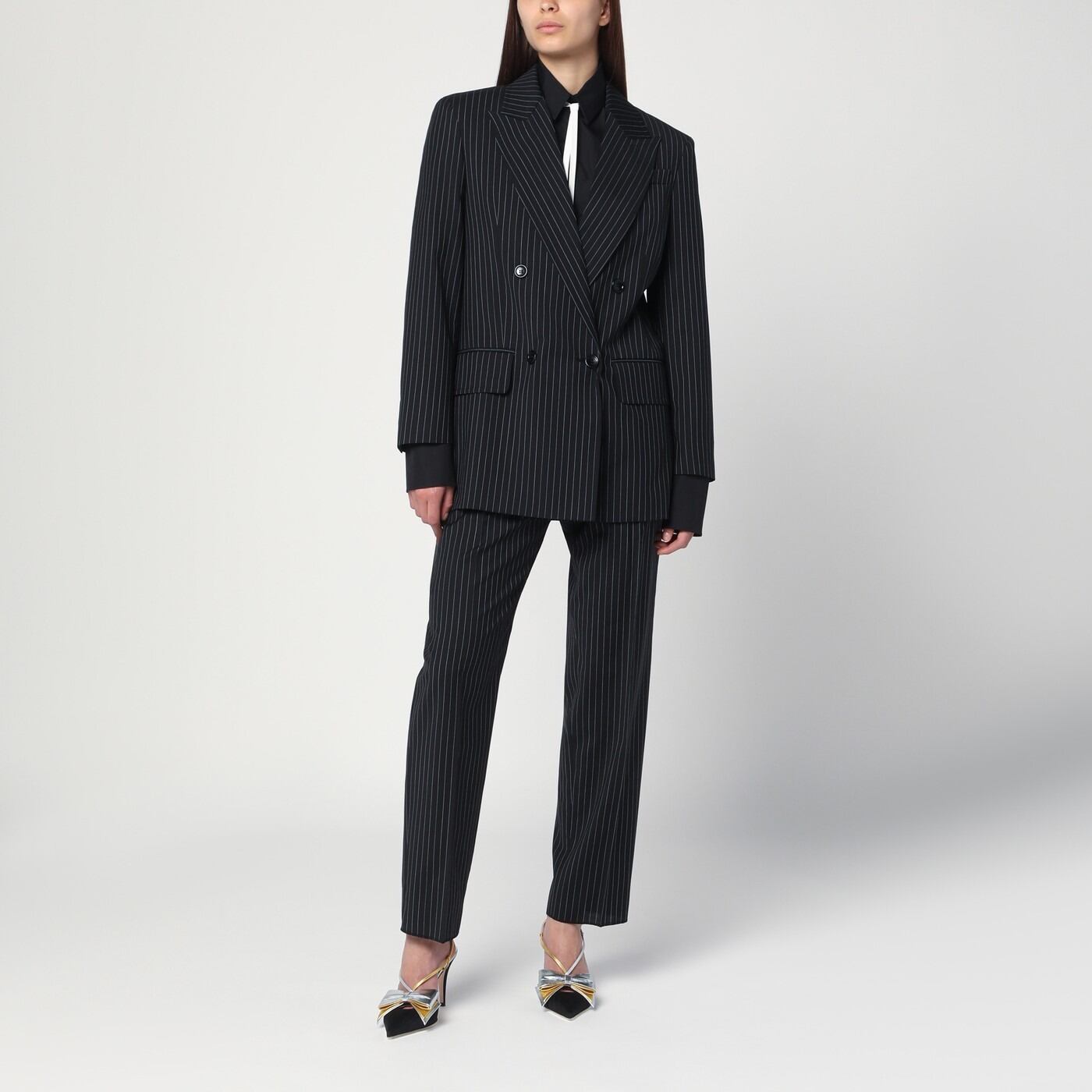 マックスマーラ ブラックのピンストライプウールトラウザーズ