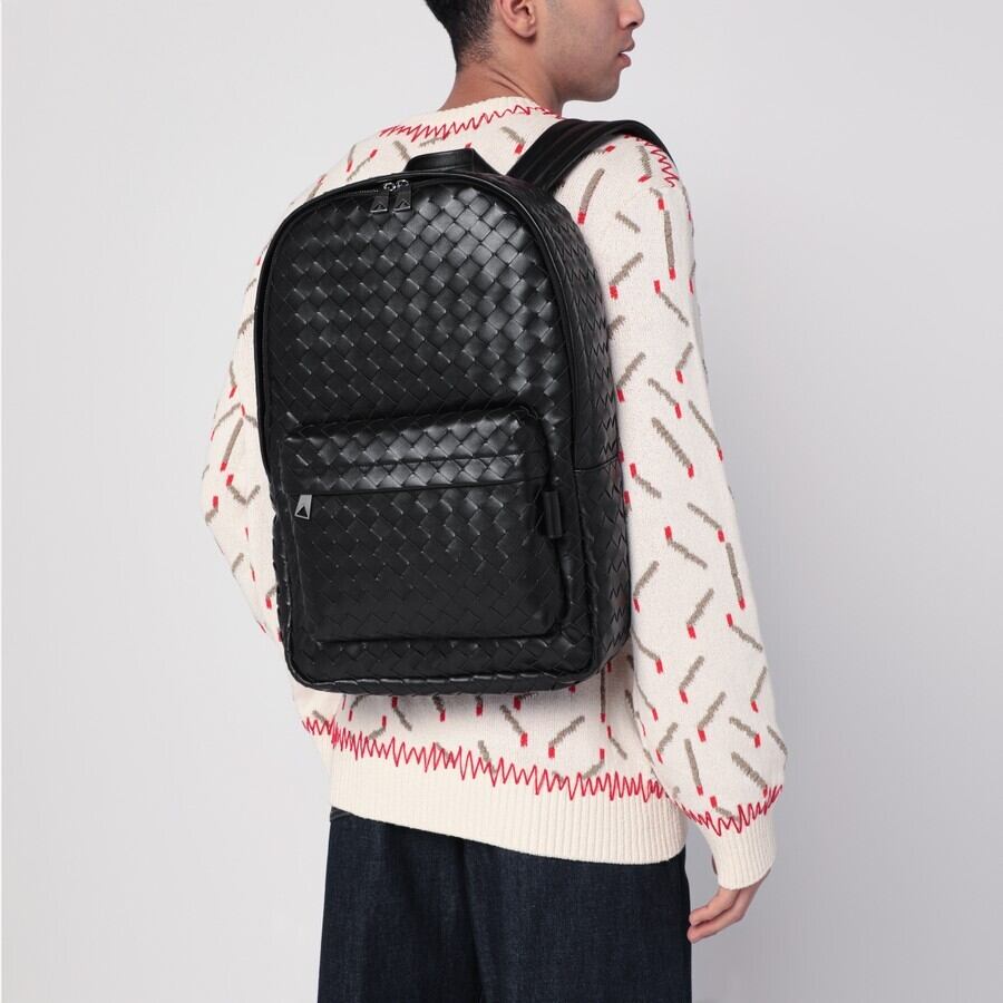 Bottega Veneta イントレチャート織りのミディアムサイズのバックパック ブラック