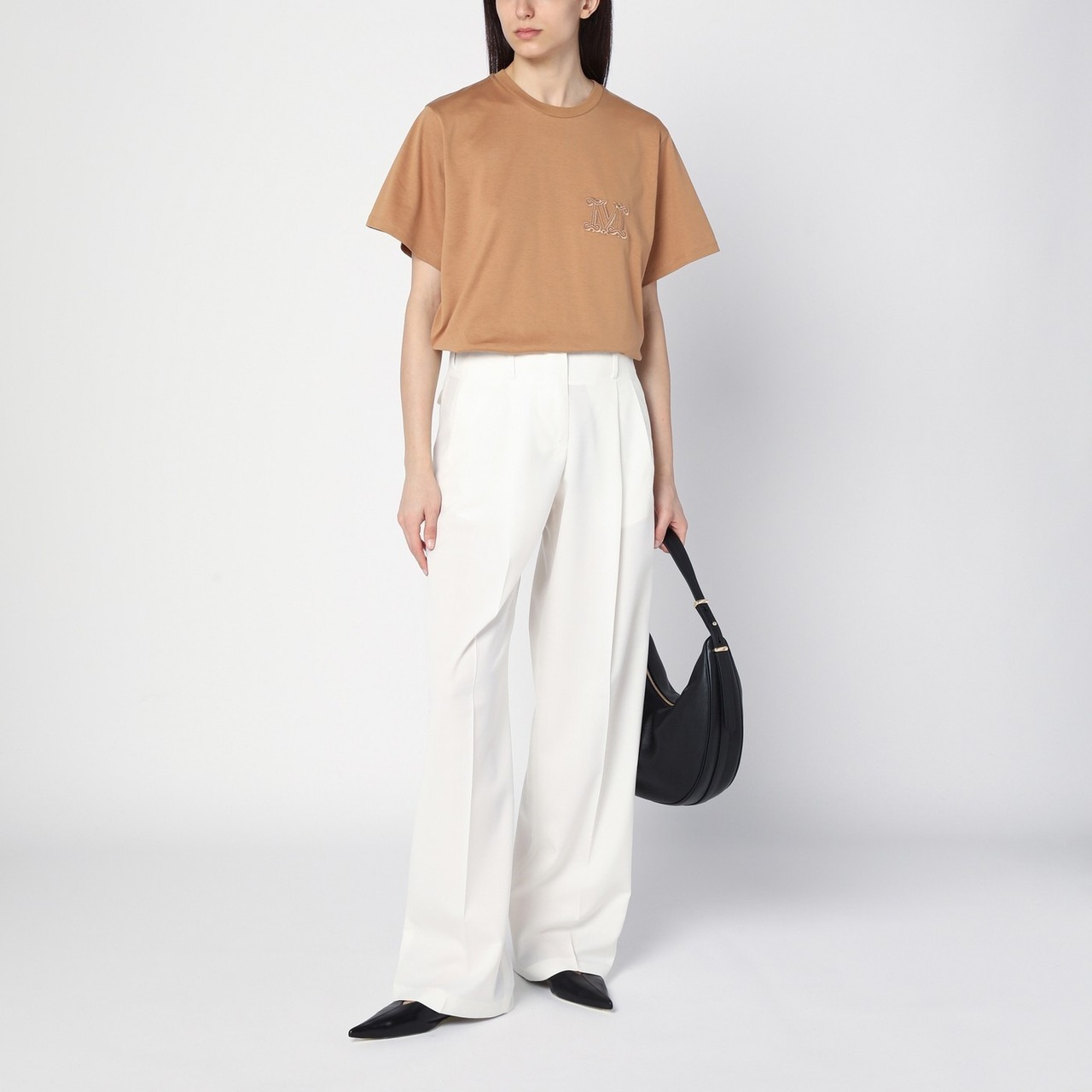 マックス・マーラ ロゴ刺繍入りオーバーサイズのベージュコットンTシャツ