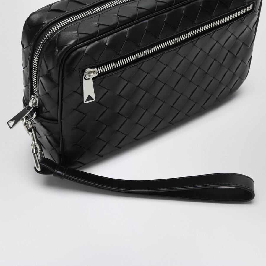 Bottega Veneta イントレチャートのブラックポーチ(リストストラップ付き)