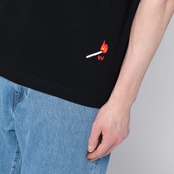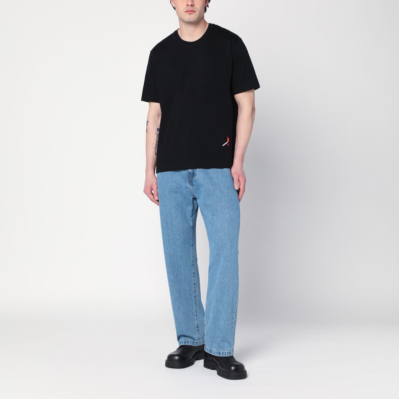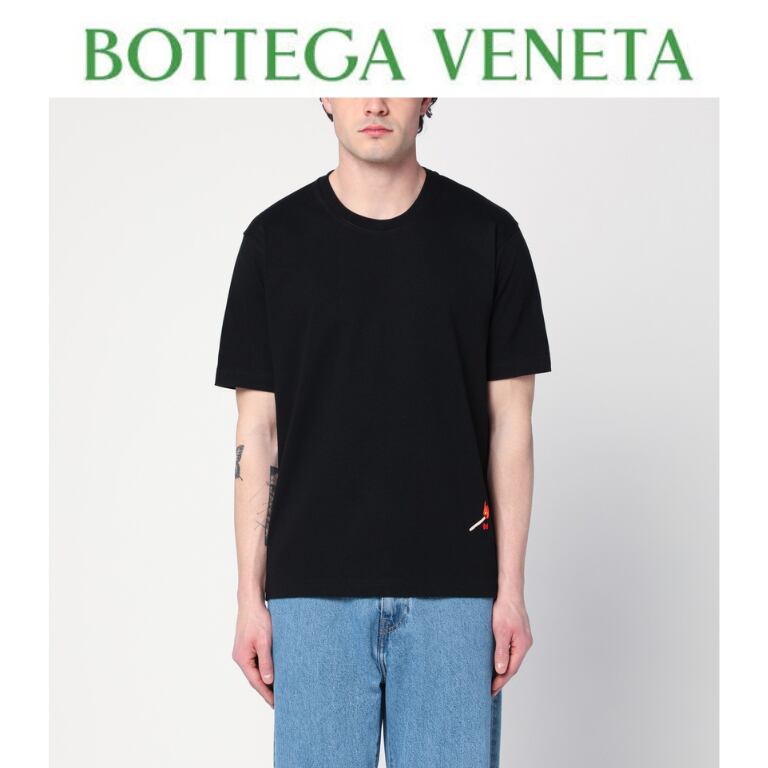 ボッテガ・ヴェンタのブラックコットンジャージー製Tシャツ。クルーネック、裾にマッチ棒の刺繍とロゴ、レギュラーフィットが特徴です。