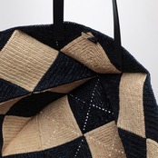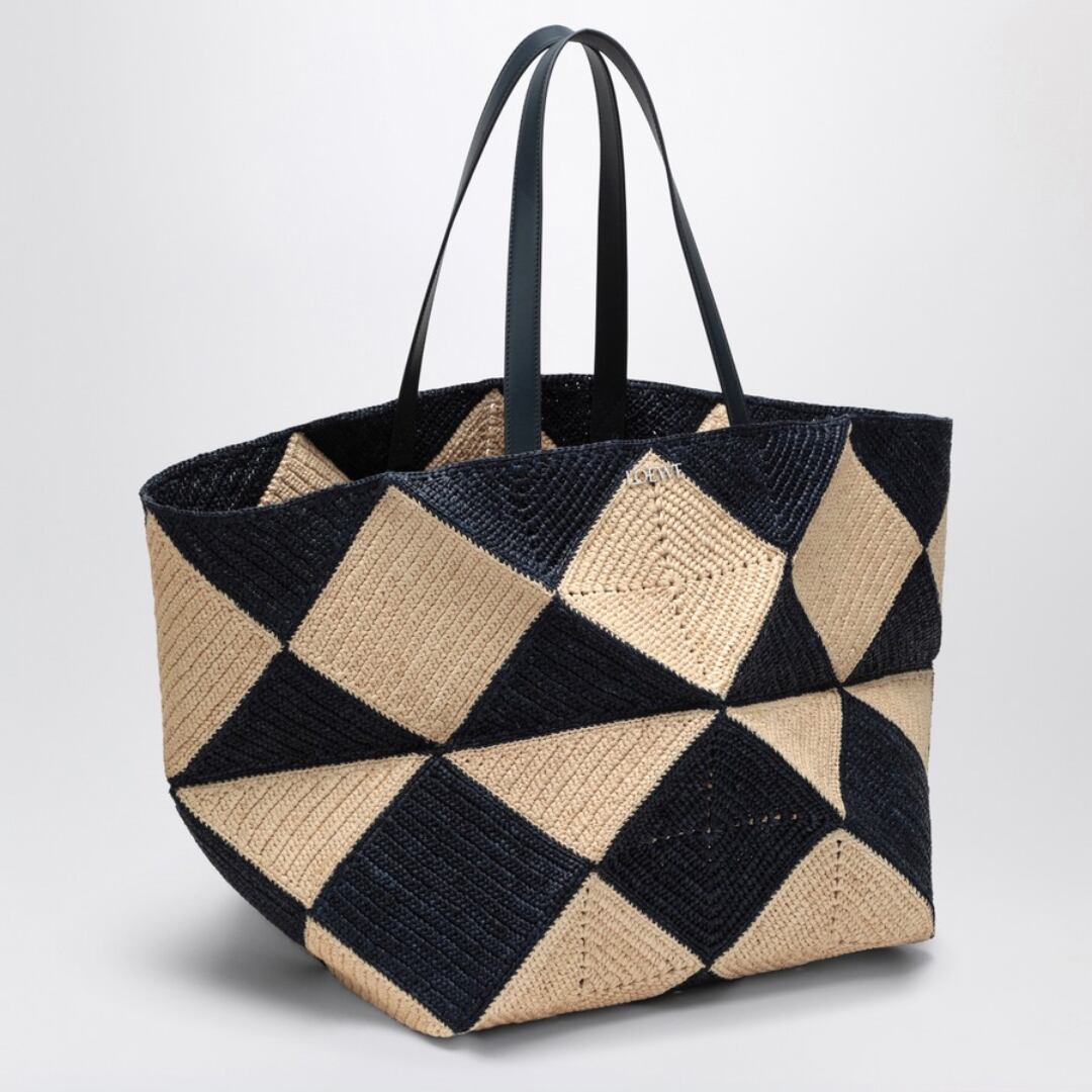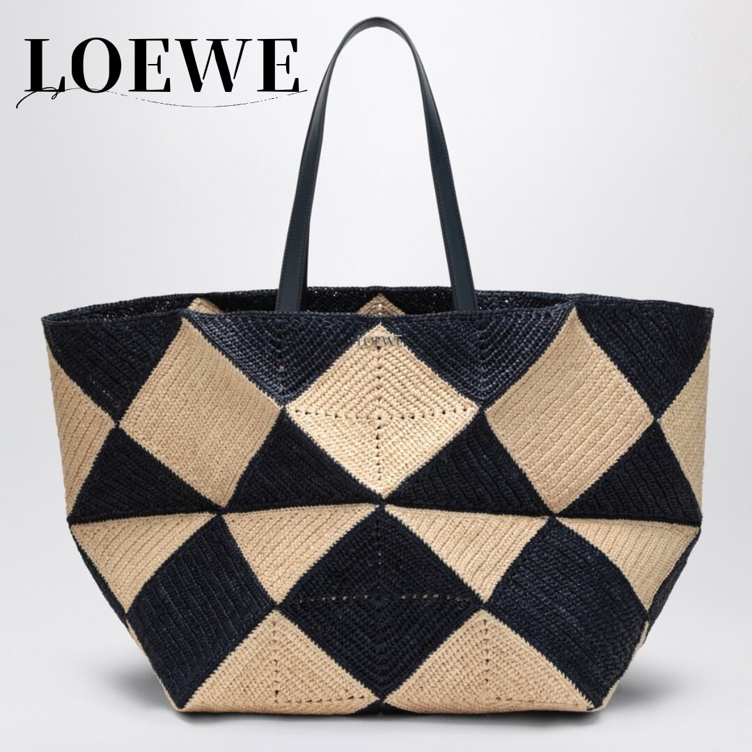 LOEWE パズルフォールドトートXXL ナチュラル/ネイビー ラフィアバッグ