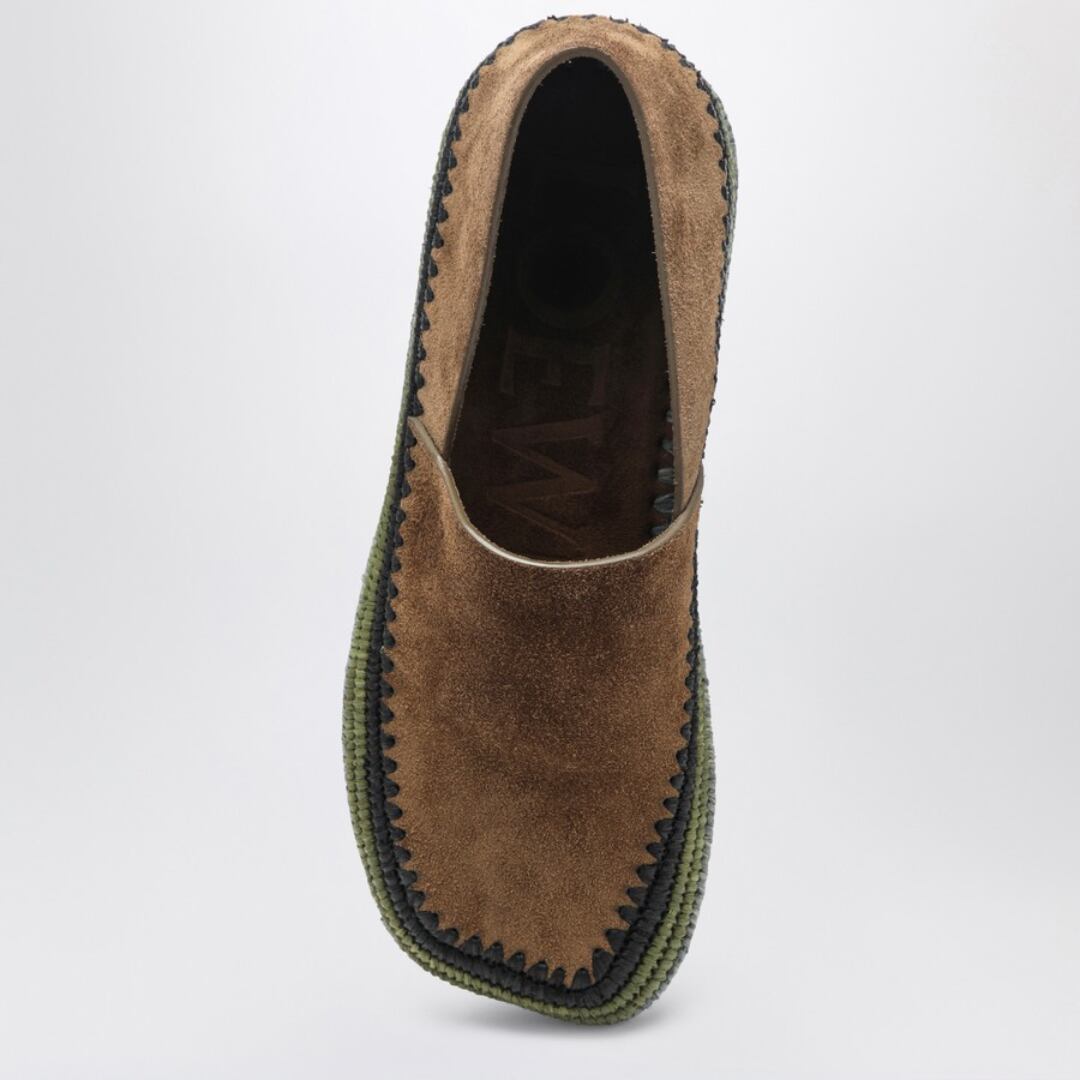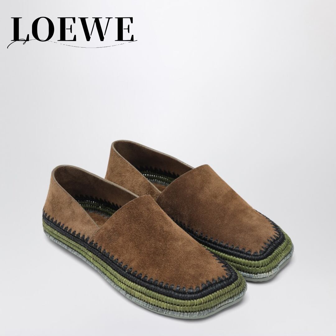 LOEWE スエードとラフィアのブラウンリオスリッパ