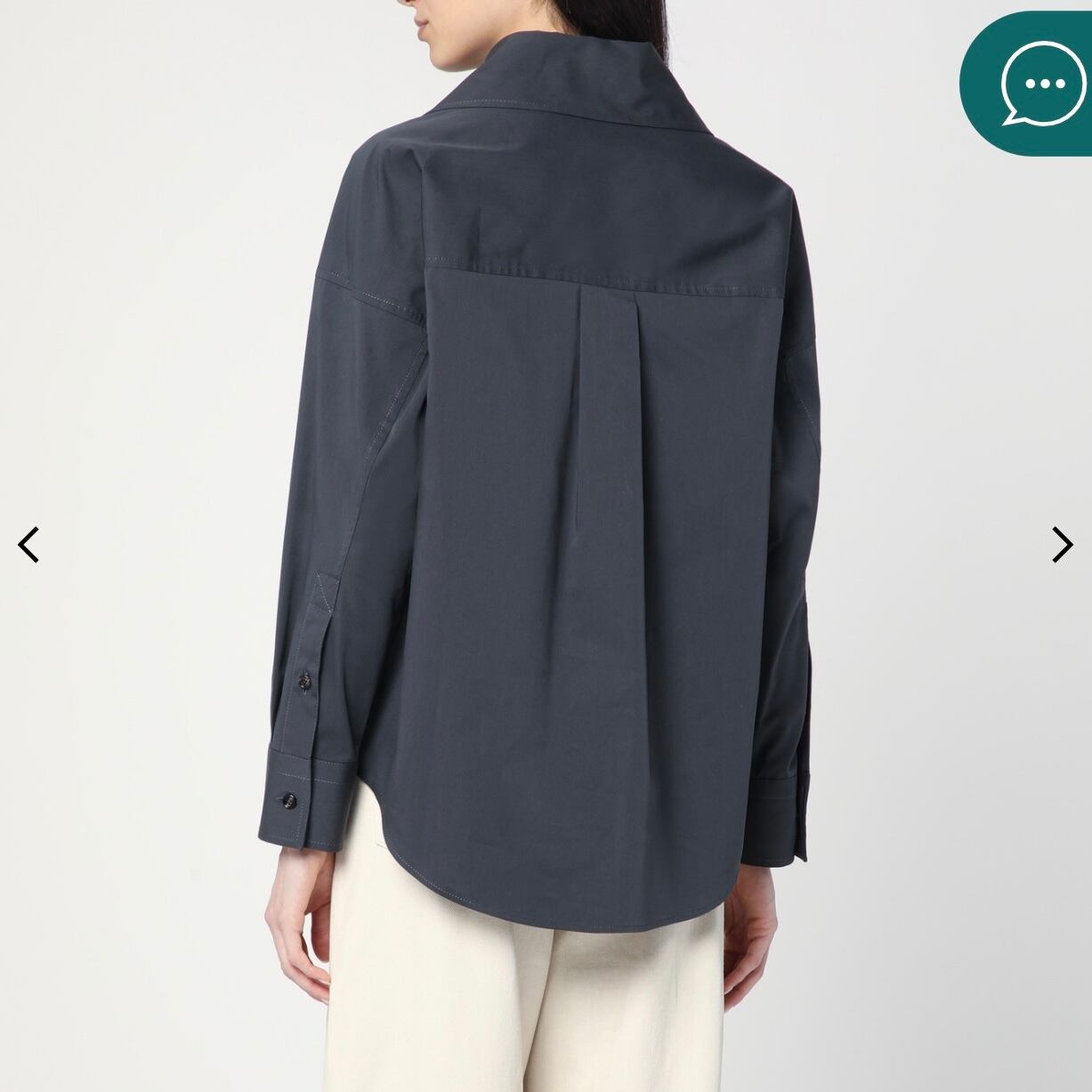 ボッテガ・ヴェネタの長袖シャツ。軽量のテクニカルコットンとシルクの グレーを使用。コントラストステッチ、オープンカラー、Vネック、ボタン カフス、リラックスフィットが特徴です。
