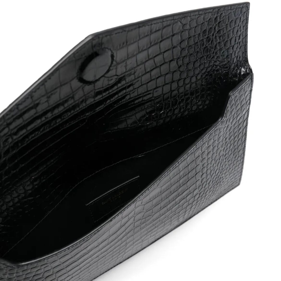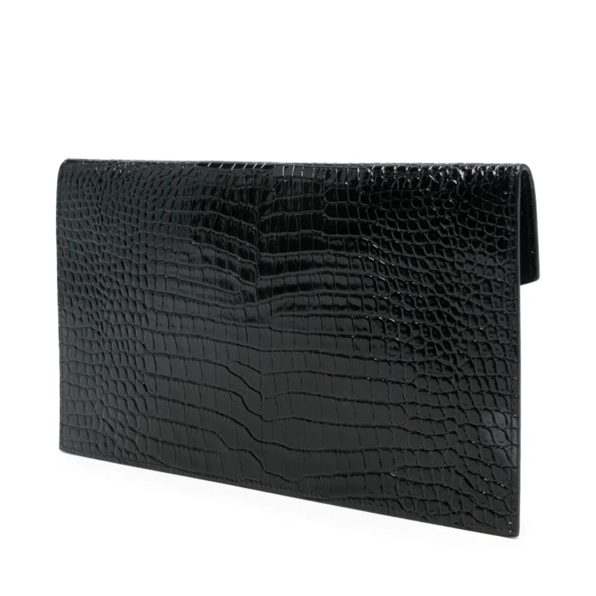 SAINT LAURENT UPTOWN POUCH IN CROCODILE-EMBOSSED SHINY LEATHER