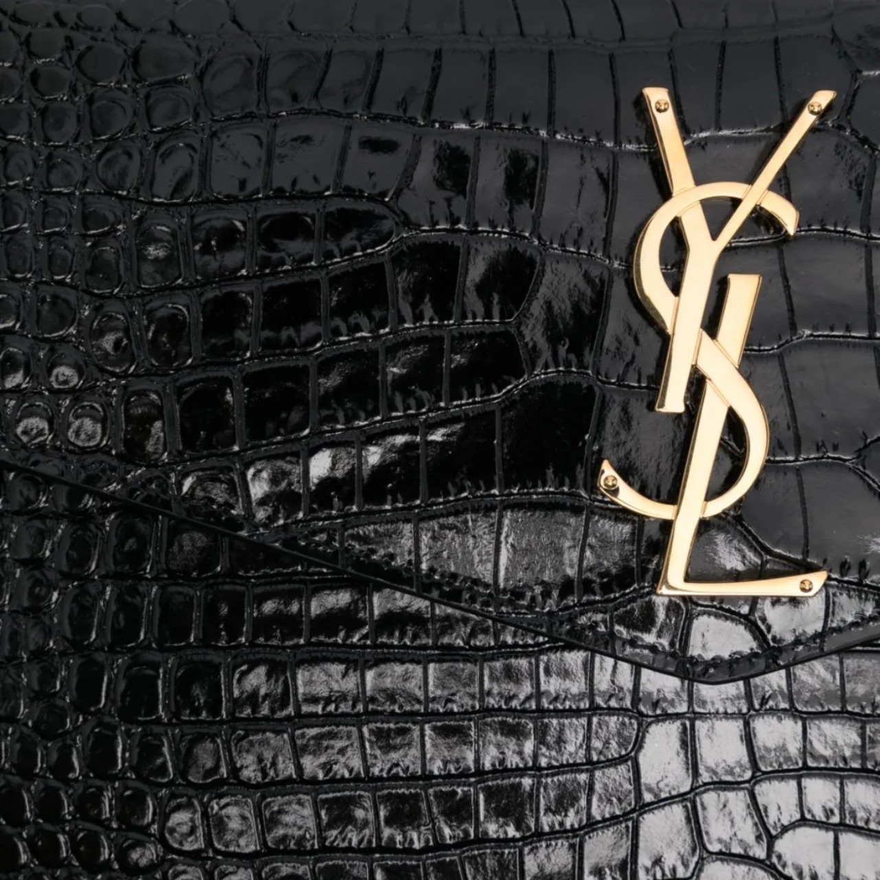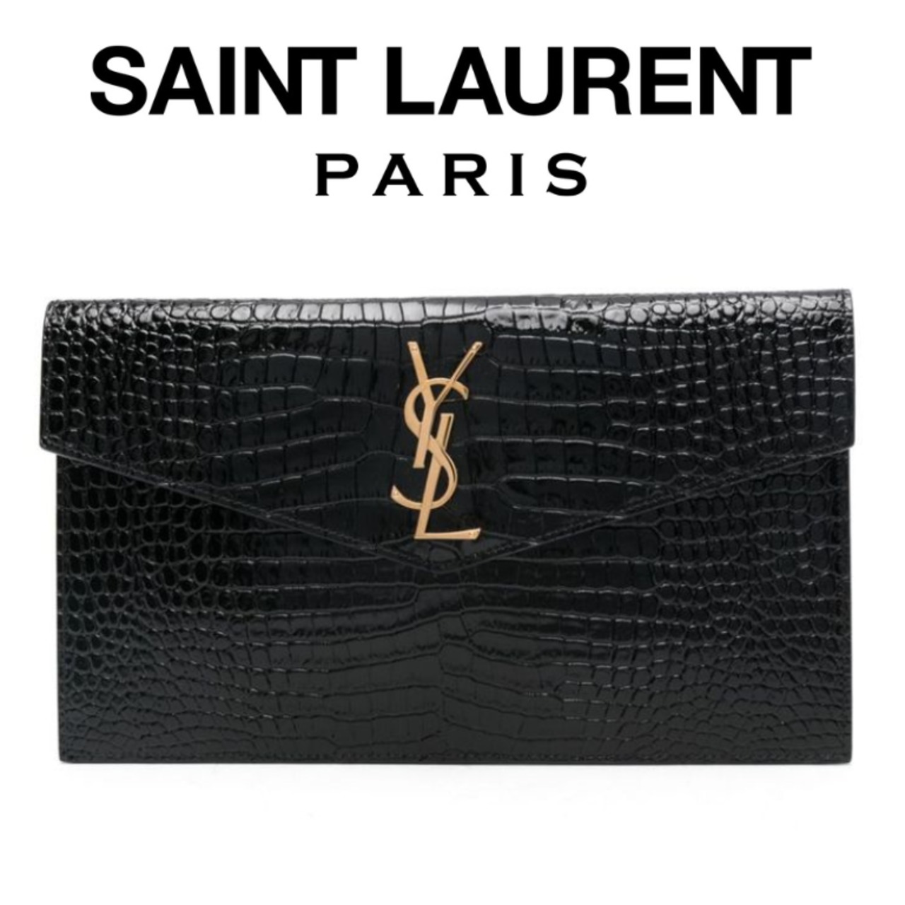 サンローラン シャイニーレザー&クロコダイルエンボスのポーチ「アップタウン」