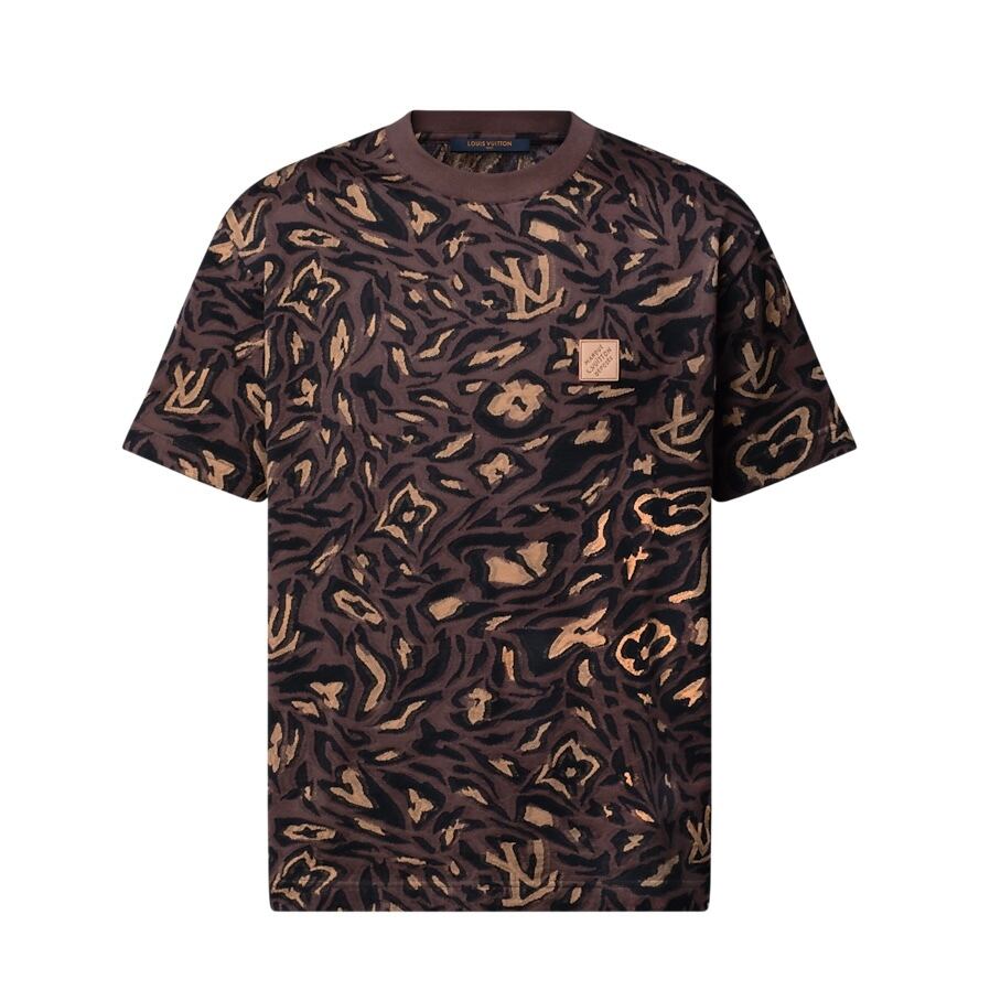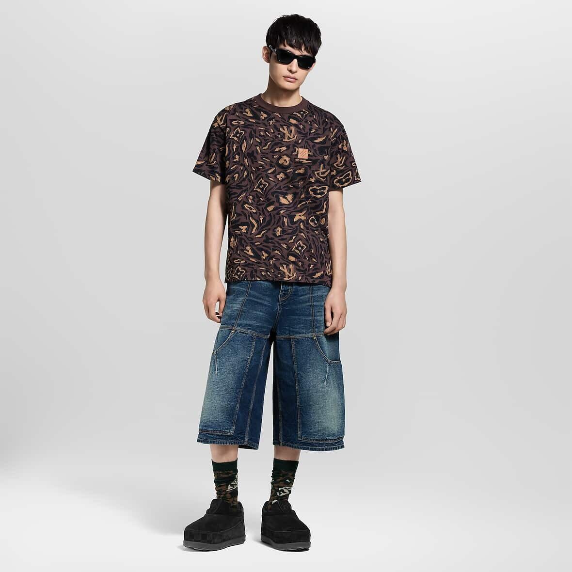 2025秋冬ファッションショーならではのLVカモフラージュ・パターンをあしらったグラフィカルなTシャツ。モノグラム・シグネチャーをさりげなく織り込んだ、複雑なジャカードジャージーで仕立てました。リッチなブラウンの合いに、胸元に配されたヌメ革のスマートな「Marque L. Vuitton Deposee」のパッチが際立ちます。これからの暑い時期に今すぐ活躍する、通気性に優れた軽量なコットンニッ