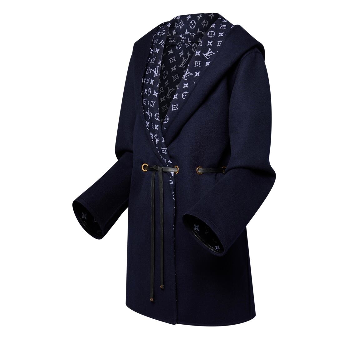 Louis Vuitton フード付きドローストリングラップコート ナイトブルー