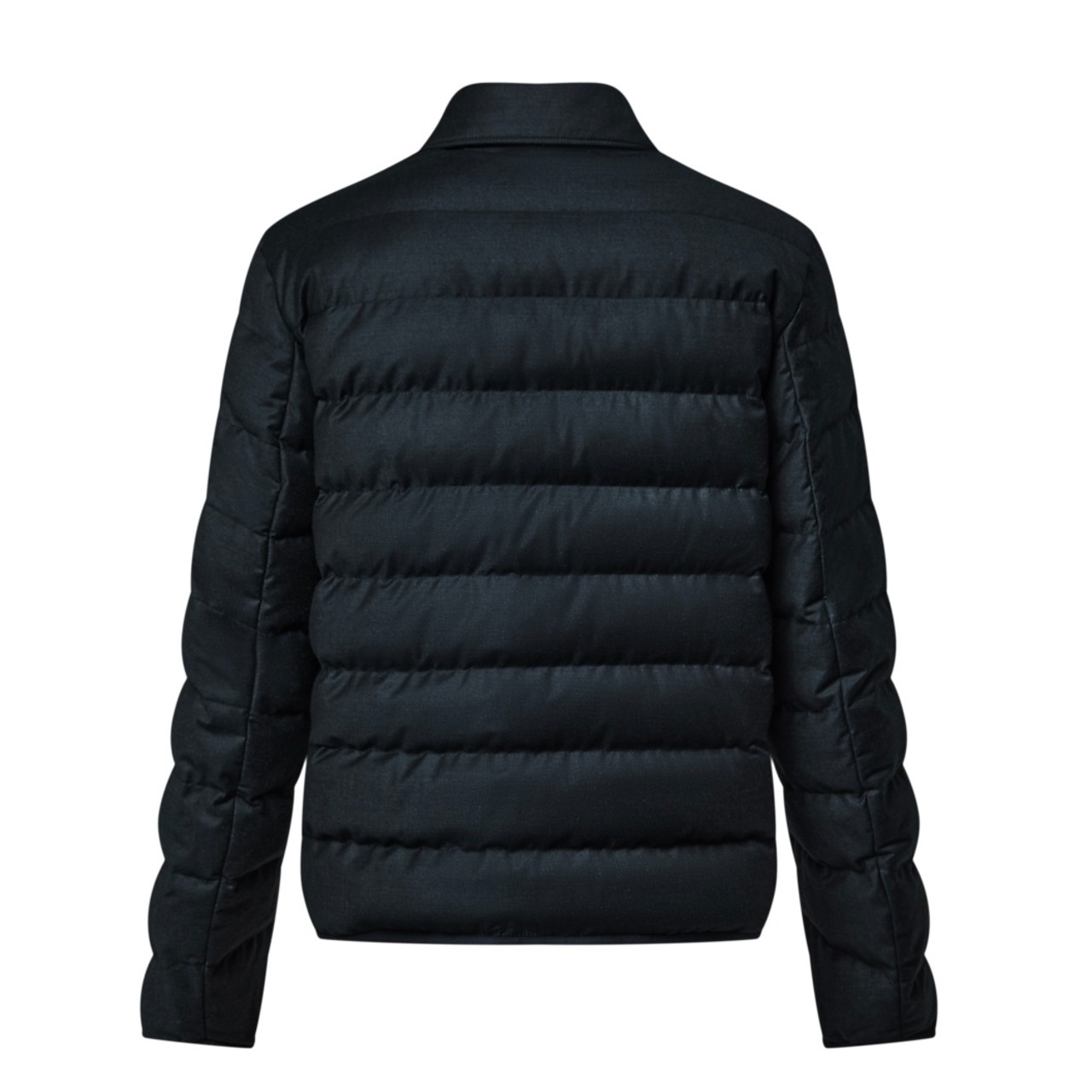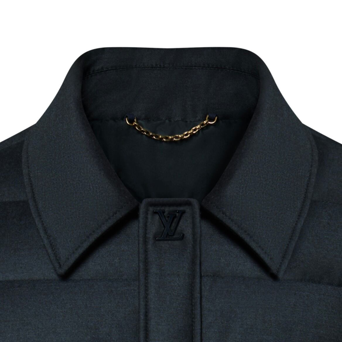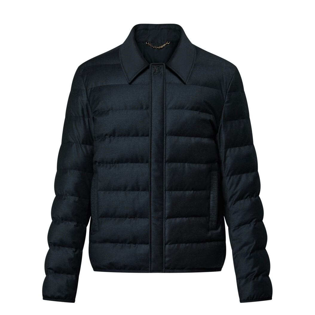 暖かくサステナブルなEcodown©に軽くキルティング加工を施したスマートなブルゾン。季節の変わり目のフォーマルな装いとして、アウトドアのレイヤードスタイルを演出します。撥水加工を施したタイムレスなダークネイビーのウール&シルクの混紡生地を使用し、プラケットの上部にメタルのIスナップボタンを配しました。各ポケットにあしらわれた同系色の「LOUIS VUITTON」の刺繍で印象的な仕上がりに。