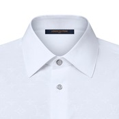 ワードロープに欠かせない、張りのあるホワイトのコットンシャツ。ジャカード織りの繊細なモノグラム・モチーフが全面にあしらわれています。同モチーフ入りのスーツとレイヤードすれば端正なエレガンスを、無地のテーラリングと合わせれば控えめなシグネチャーアクセントを添えることが可能。普段の装いを昇華させることをはじめ、多彩なスタイリングが楽しめるタイムレスな定番アイテムです。
