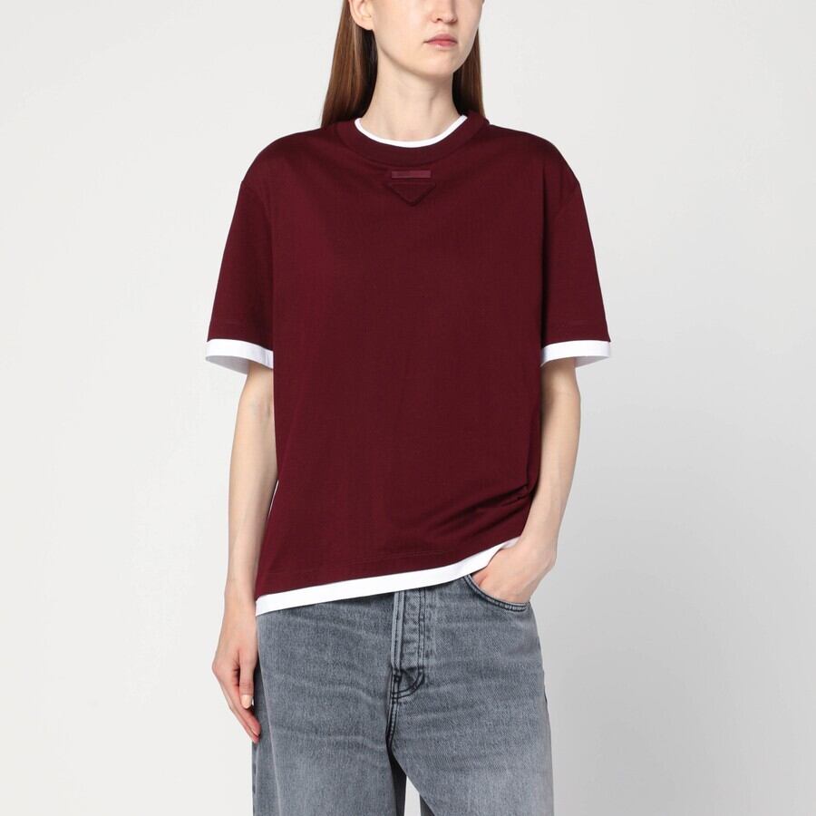 PRADA コットン・ジャージーのアマランスTシャツ ブルゴーニュ