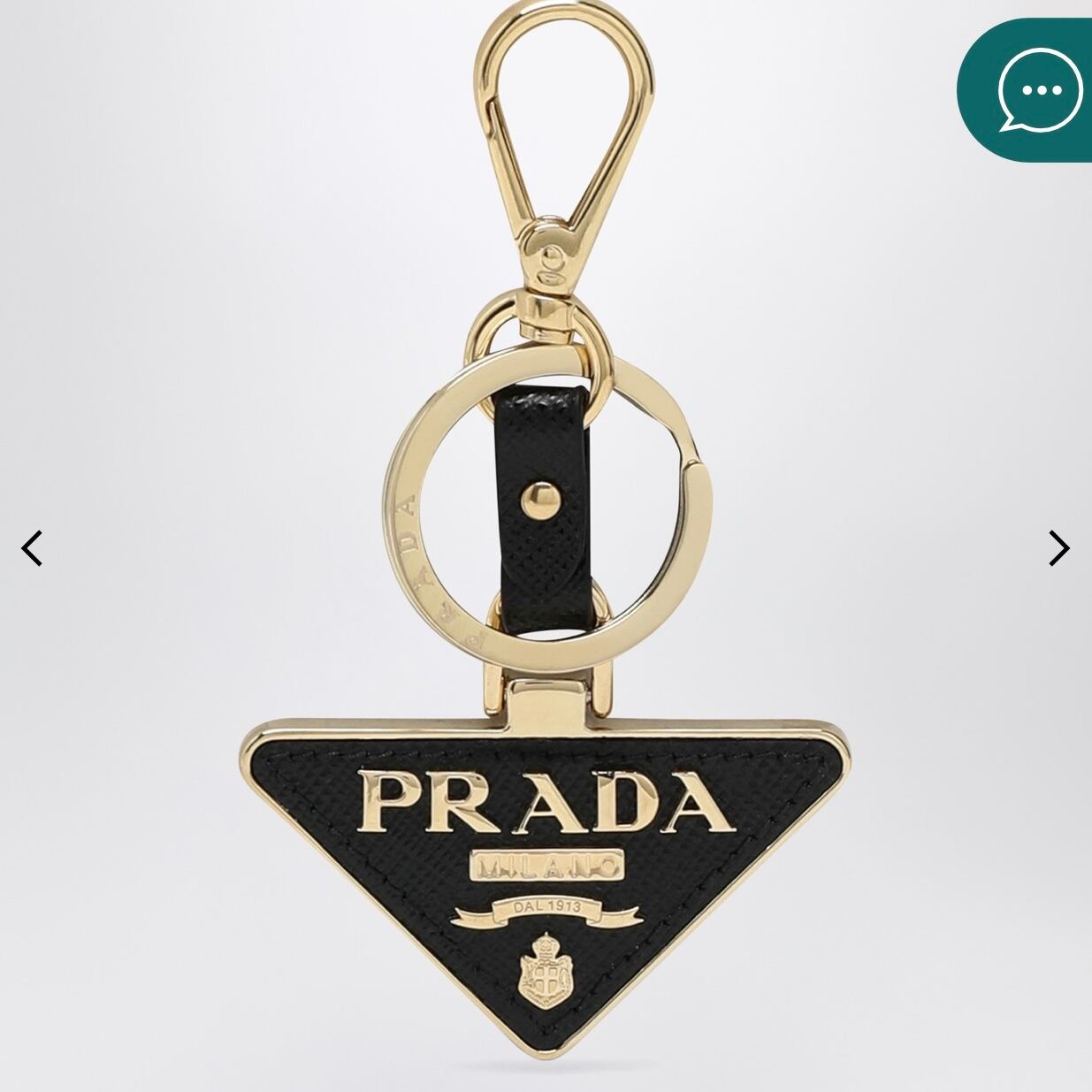 PRADA プラダのキーホルダー。ゴールドトーンメタルにブラックレザー仕上げ。ロゴ トライアングル、リング、カラビナ付き。 アクセサリーもご覧ください 商品SKU:1PP128053/Q カラーコード:PRADA-F0002