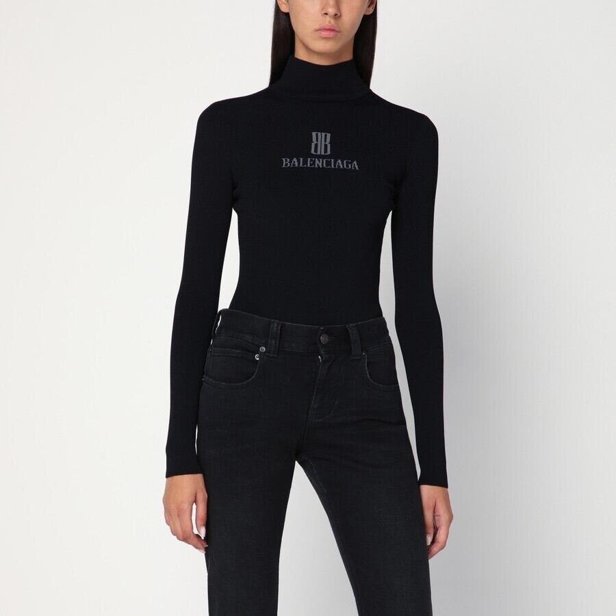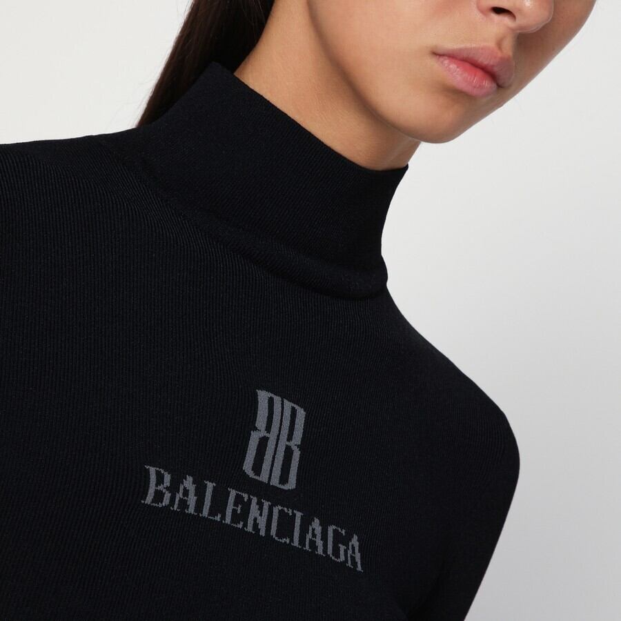 ブラックのビスコース混紡を使用したバレンシアガのセーター。ハイネック、長袖、リブ編みのデザイン、フロントに/BBモチーフが施されています。