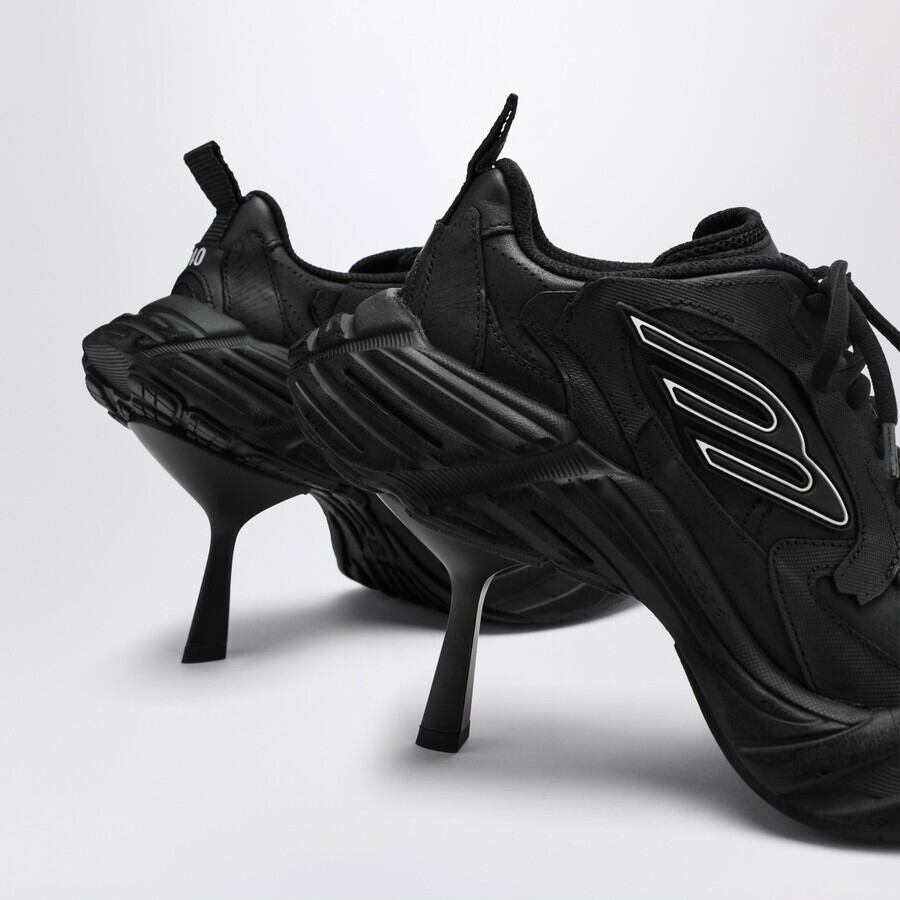 バレンシアガのヒールスニーカー。使い古したような風合いの黒の牛革とポリエステルを使用。目立つトップステッチ、ヒールの後ろにエンボス加工されたサイズの文字、両サイドにラバーの 3B スポーツアイコンモチー