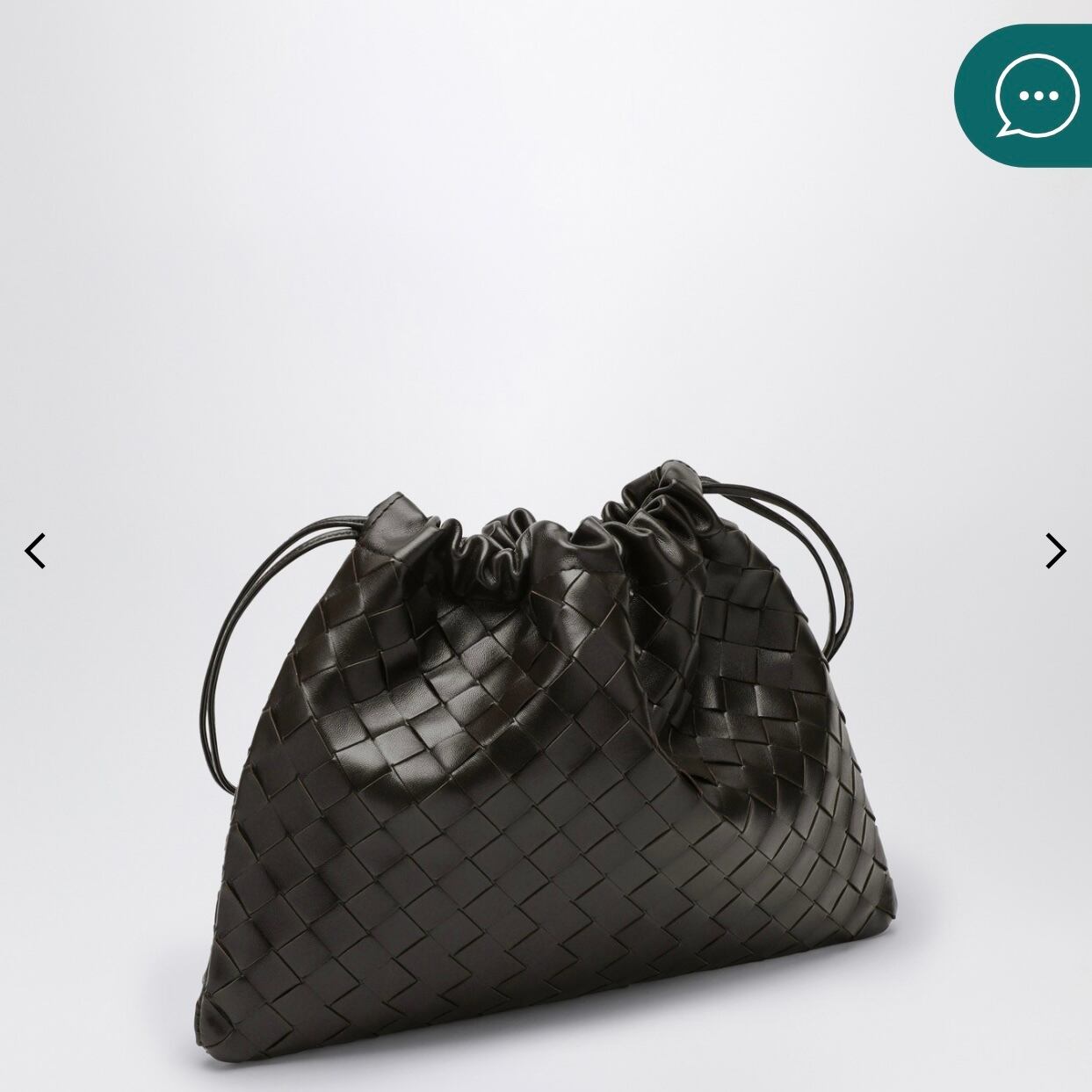 ボッテガ・ヴェネタのカーフレザー製クラッチバッグ。フォンダンカラーの イントレチャート模様。メインコンパートメント、ドローストリング開閉部、 肩にかけるためのレザーループ付き。