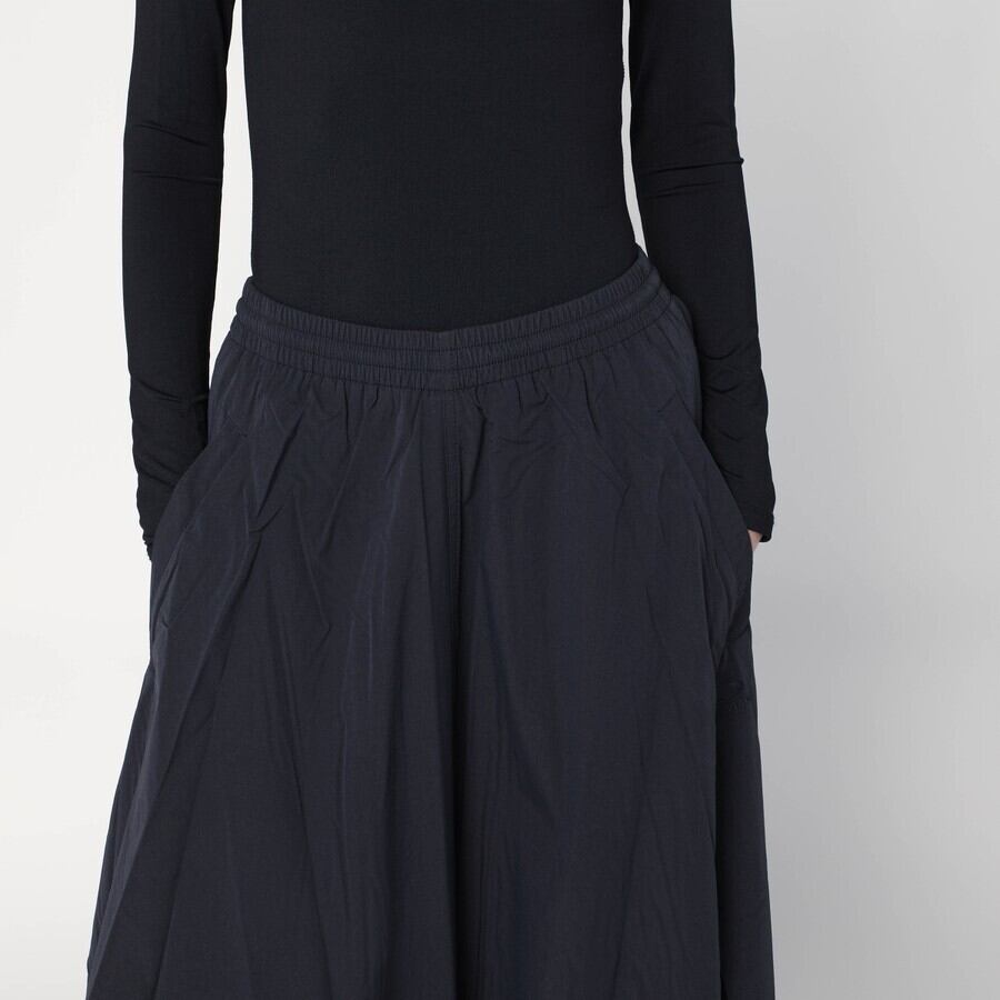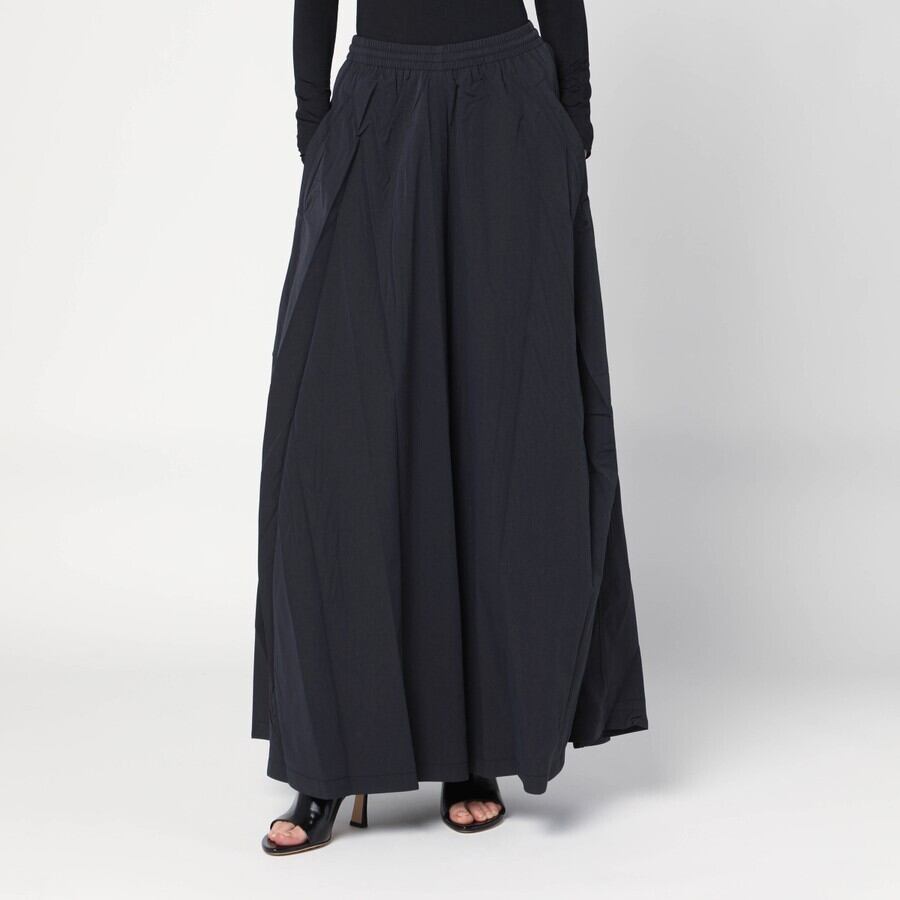 伸縮性のあるウエストバンドと両サイドのウェルトポケットが特徴的な、ウォッシュ加工のブラックコットンを使用したバレンシアガのマキシロングスカート。