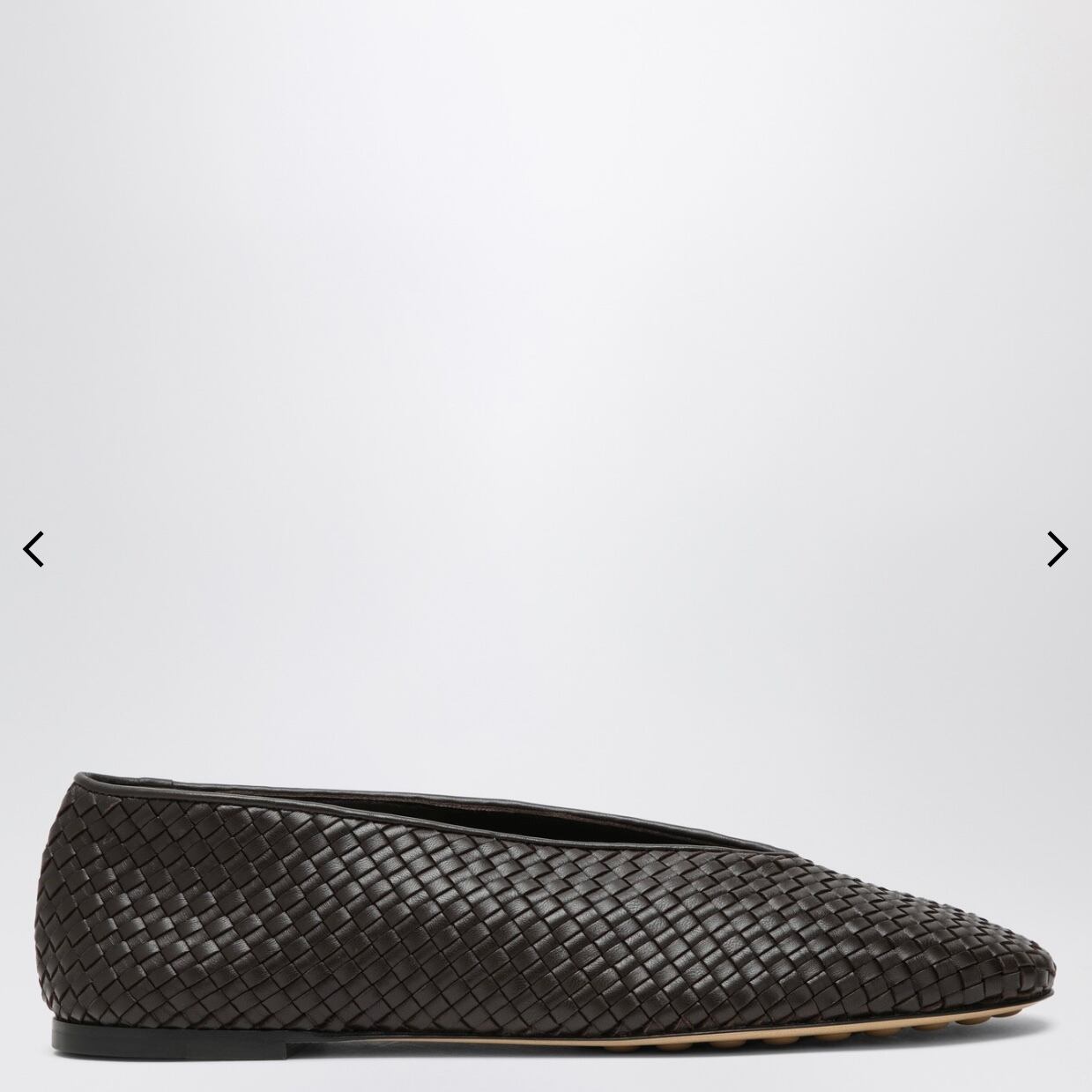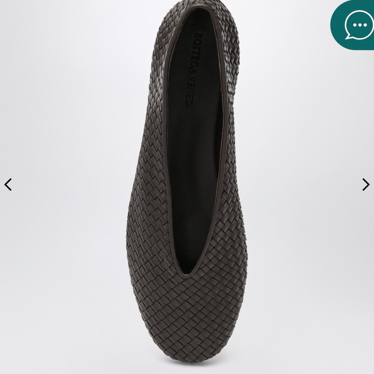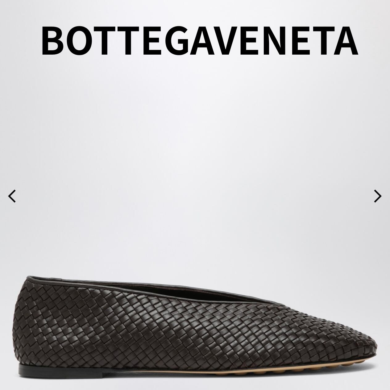 ボッテガ・ヴェネタのバレリーナシューズ。フォンデンテ・イントレチャート模様 のカーフスキン製。ラウンドトゥとインジェクションラバーのレザーソールが特徴 です。