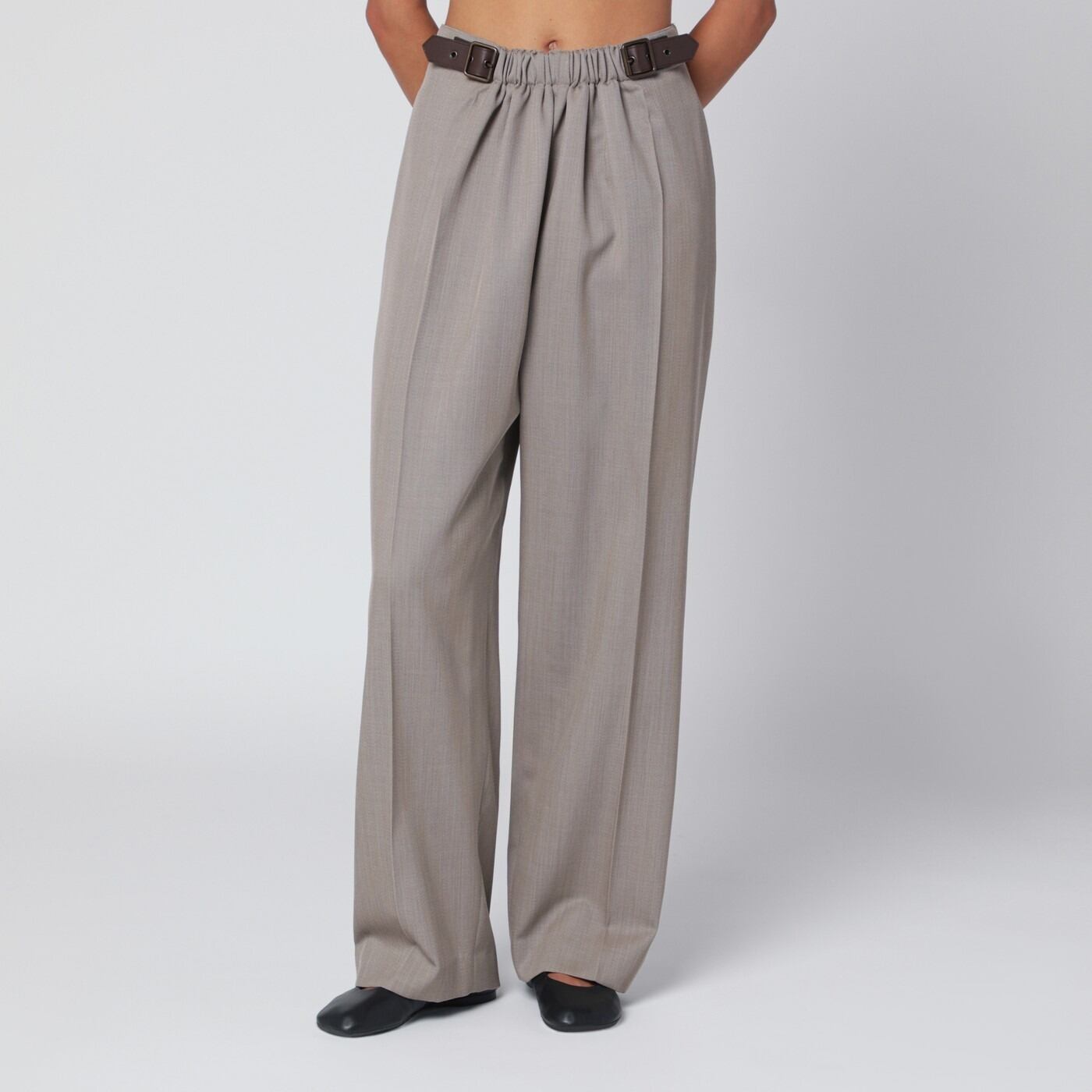 ロエベ ベージュのメランジウール&シルクパンツ(ベルト付き)