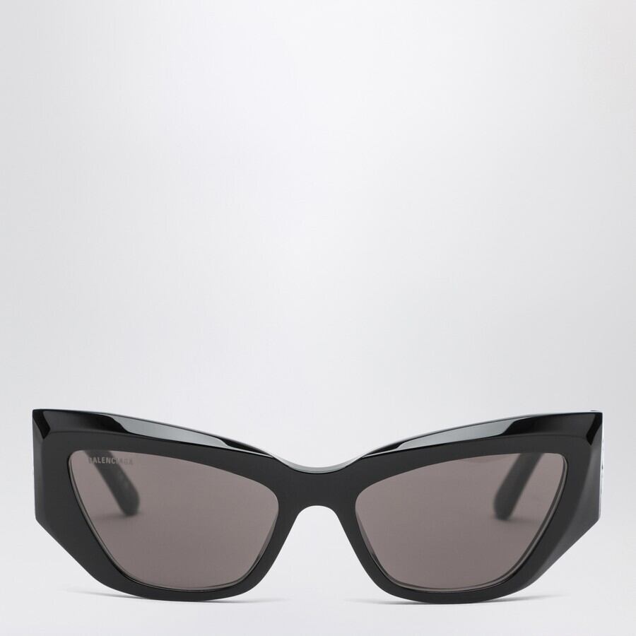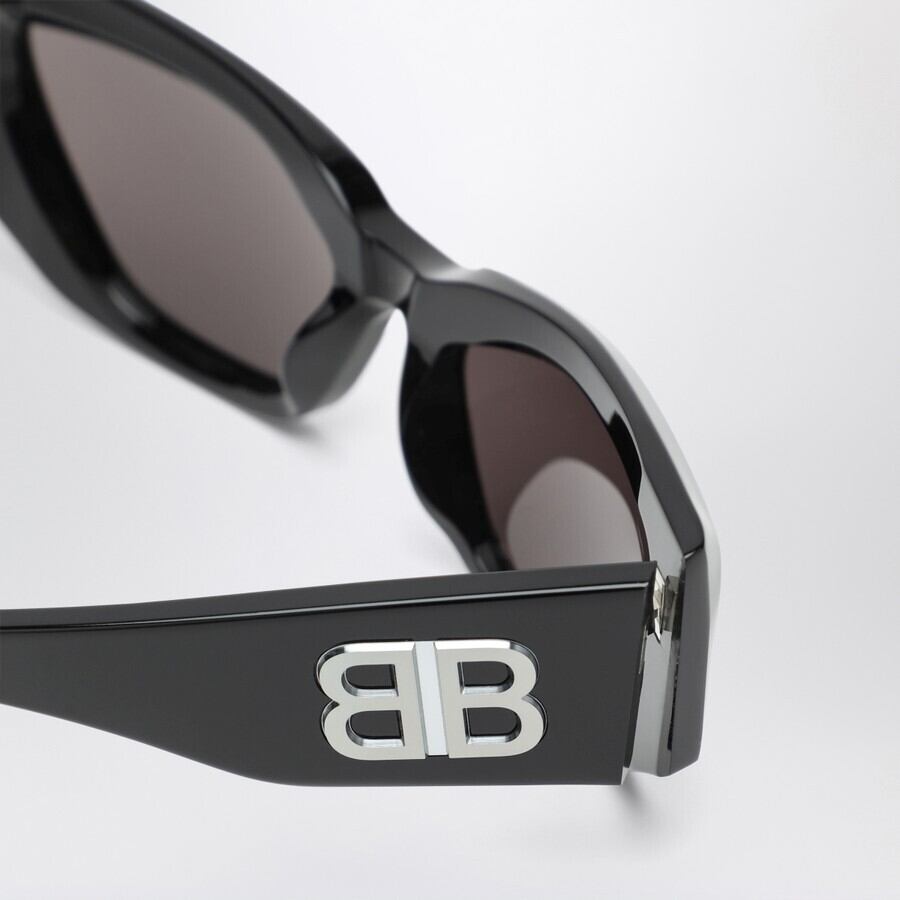ブラックアセテートを使用したバレンシアガのサングラス。テンプルにはシルバー仕上げのメタル BB ロゴ、グレーのレンズには 100%UVA/UVBカットが施されています。