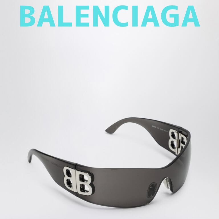 バレンシアガのサングラスは、特徴的なデザイン、黒の注入ナイロン製フレームとテンプル、スマートなフィット感、テンプルのシルバーメタル BBロゴ、100%UVA/UVB カットのレンズが特徴です。