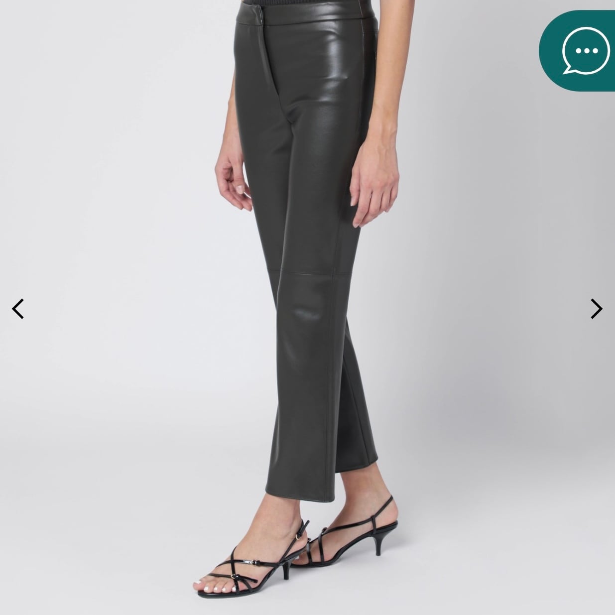 S Max Maraのパンツ。ブラックのコーティング生地を使用。カットとレザー風の ステッチが施されたフィット感のあるシルエット。背面にポケット2つ、フック 付きジッパー開閉、足首丈のクロップドカットが特徴です。