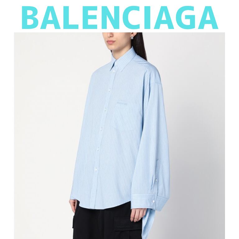BALENCIAGA 袖口が結ばれたストライプシャツ ライトブルー