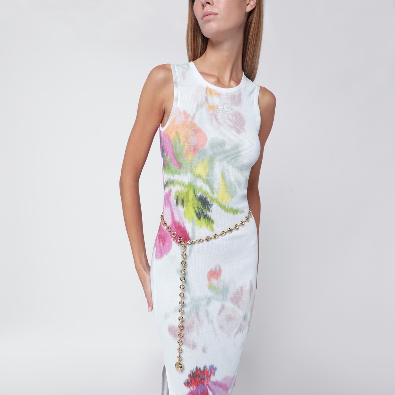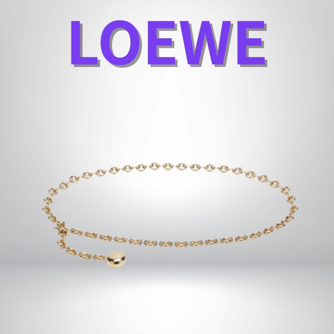 ロエベのゴールドトーンメタルチェーンベルト。フック&アイ留めとアナグラム・ペブルのディテールが特徴です。