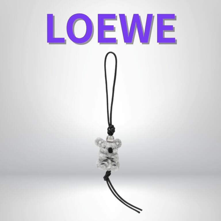 ライトグレーのフェルトで作られたコアラ型のロエベペンダント。カーフスキンレザーのチューブ状のループストラップとゴールドのアナグラム・ペブルのディテールが特徴です。