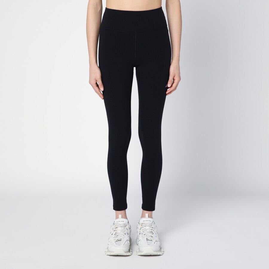 バレンシアガのブラックマットナイロン混紡レギンス。伸縮性のあるウエストバンド、前面に反射ロゴプリント、トーンオントーンのステッチが特徴です。