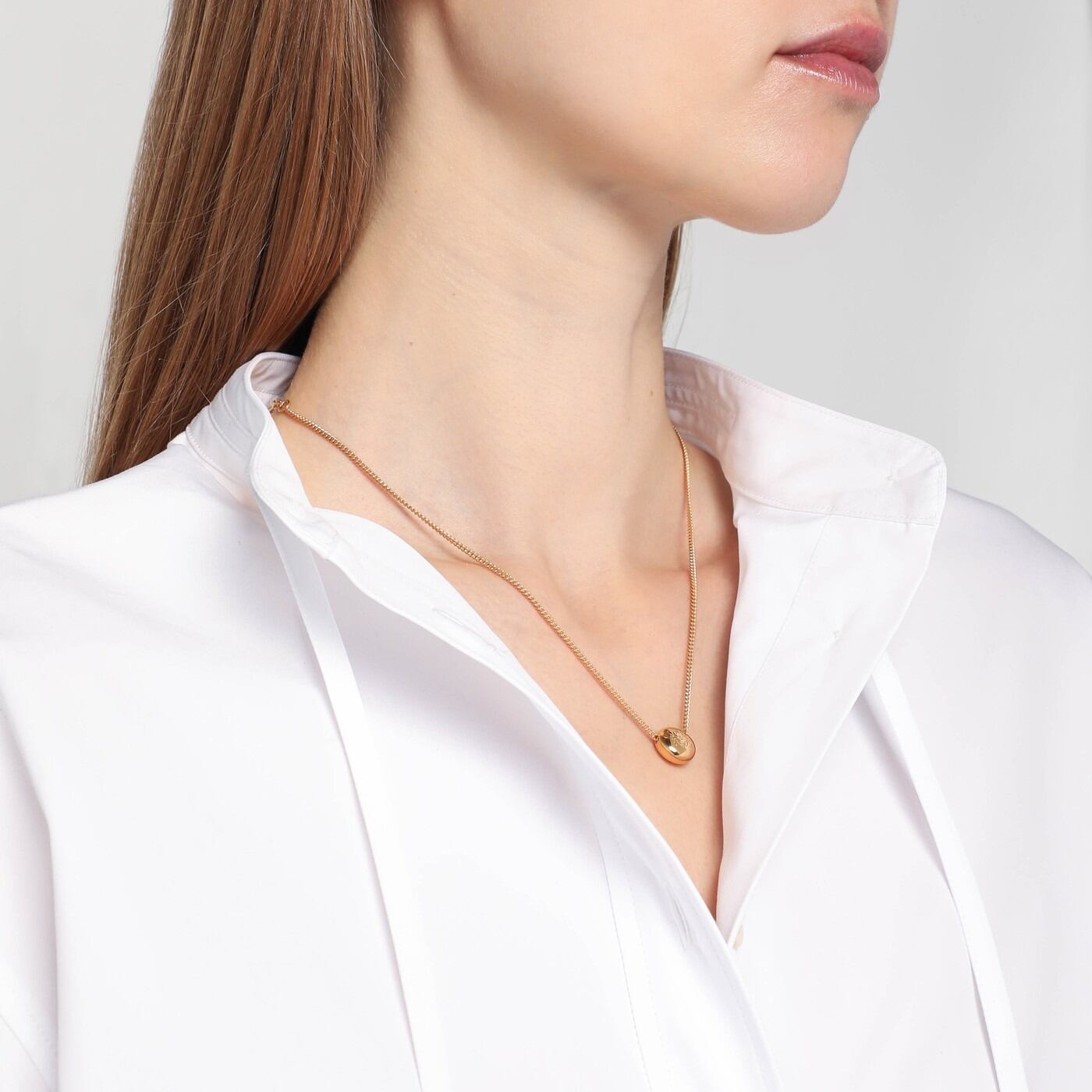 ゴールド仕上げのスターリングシルバーのロエベ ネックレスは、アナグラム ペブルとフック付きの調節可能なクラスプが特徴です。