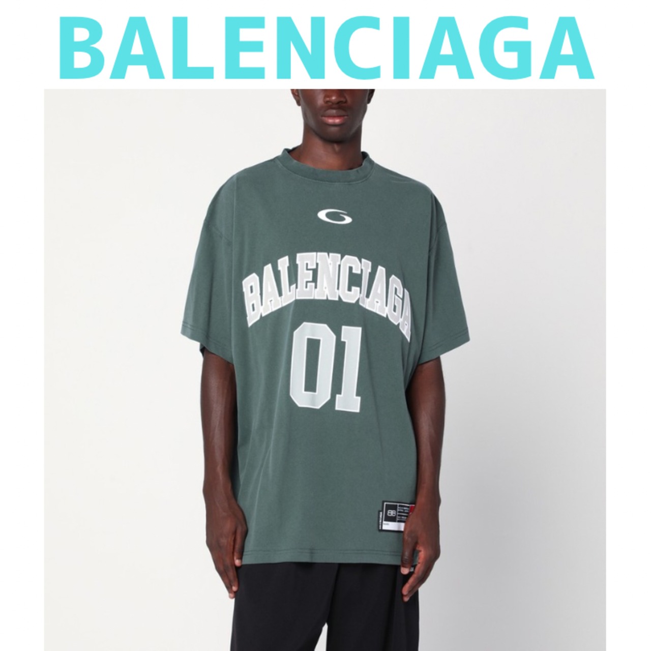 BALENCIAGA オーバーサイズバスケットボールTシャツ ダークグリーン/ライトグレー