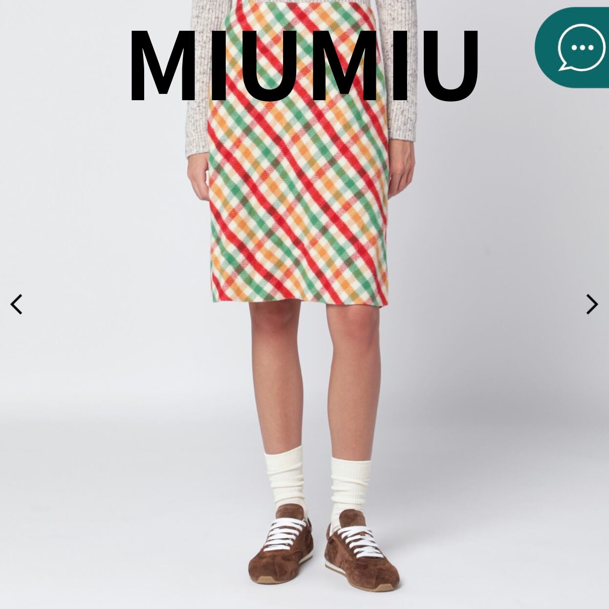 MIUMIU レッド/グリーン/ソイチェック柄スカートとフリース
