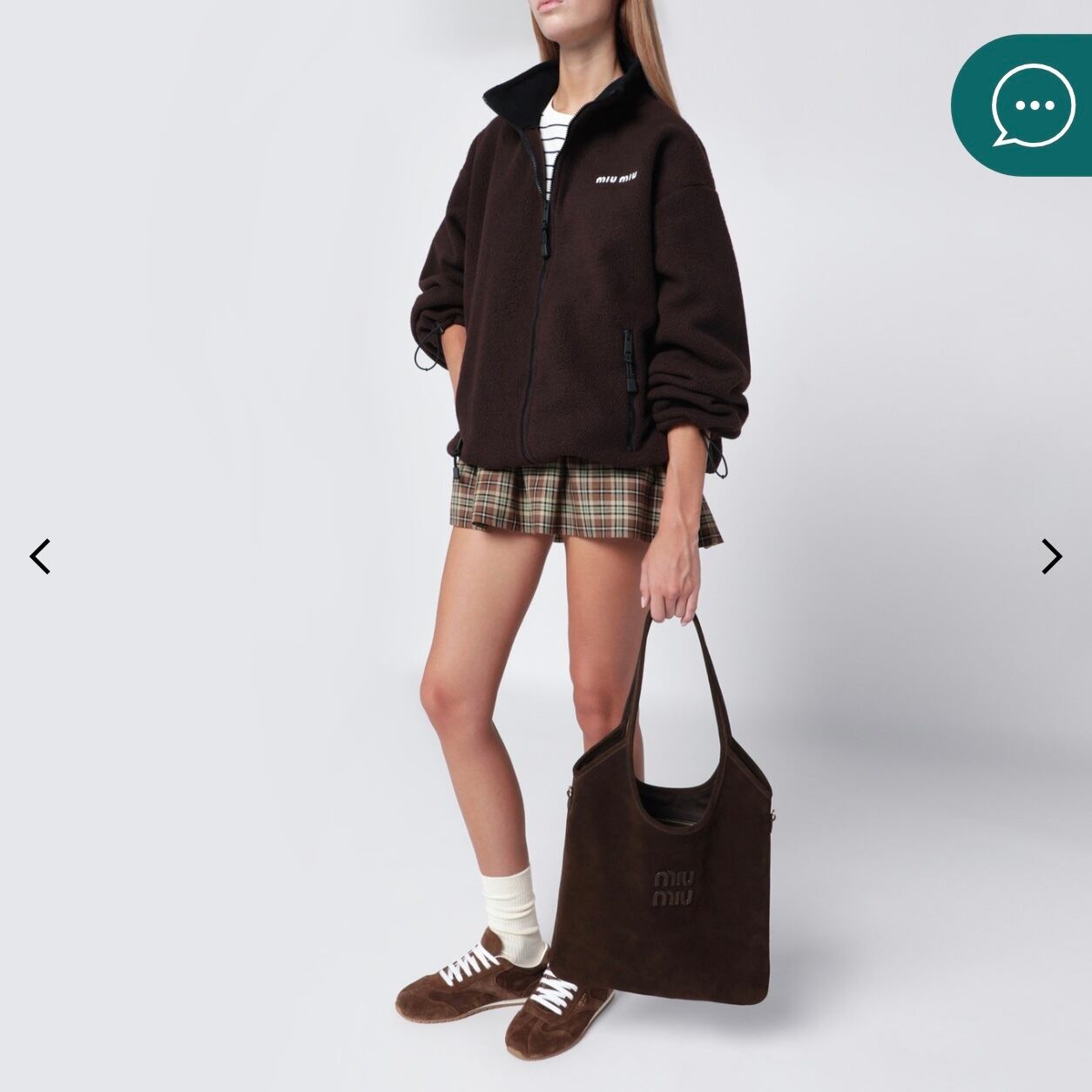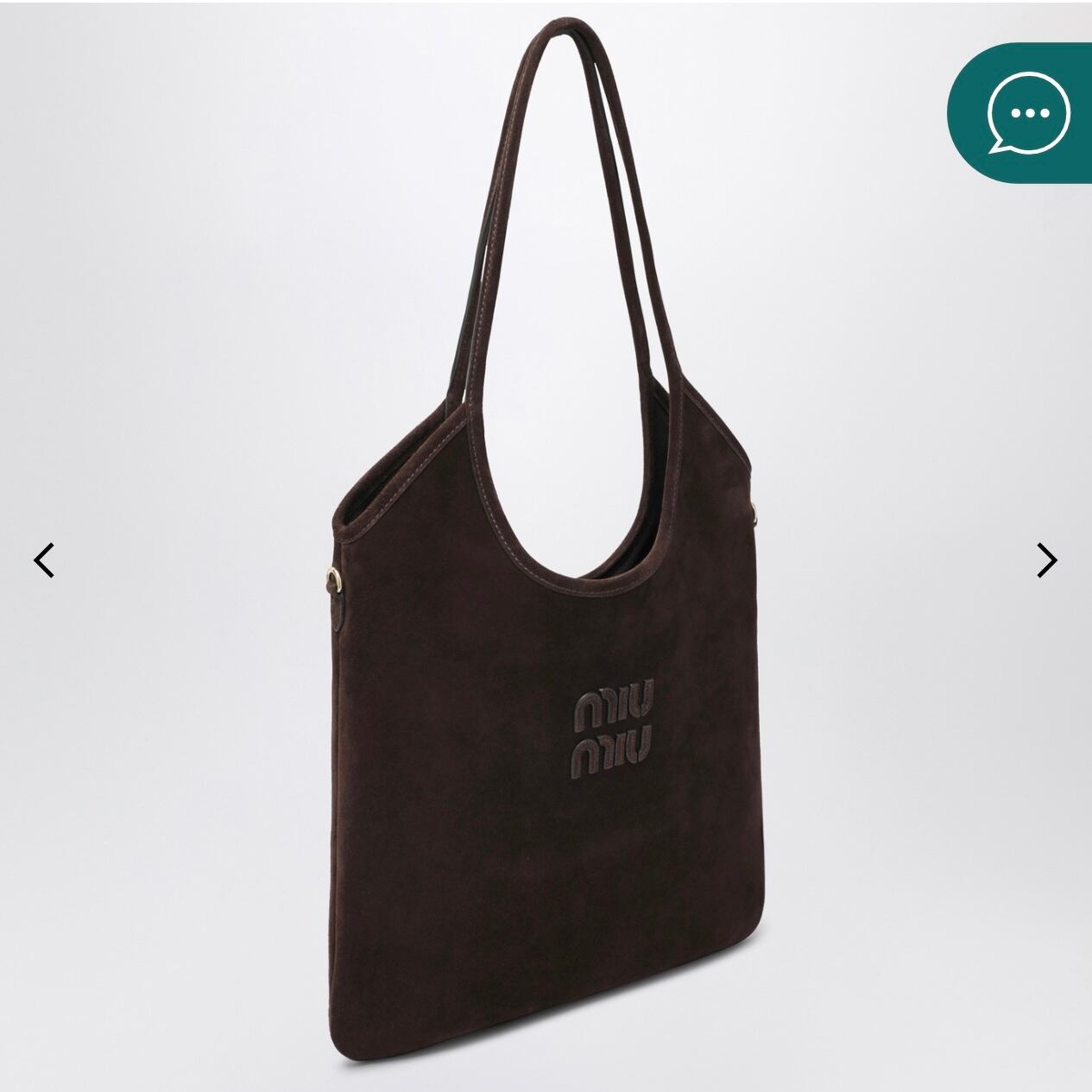 モロカラーのスエードを使用したミュウミュウのハンドバッグ。2つのハンドル、フロントにエンボス ロゴ、内側にジッパー付きポケットが1つ付いています。