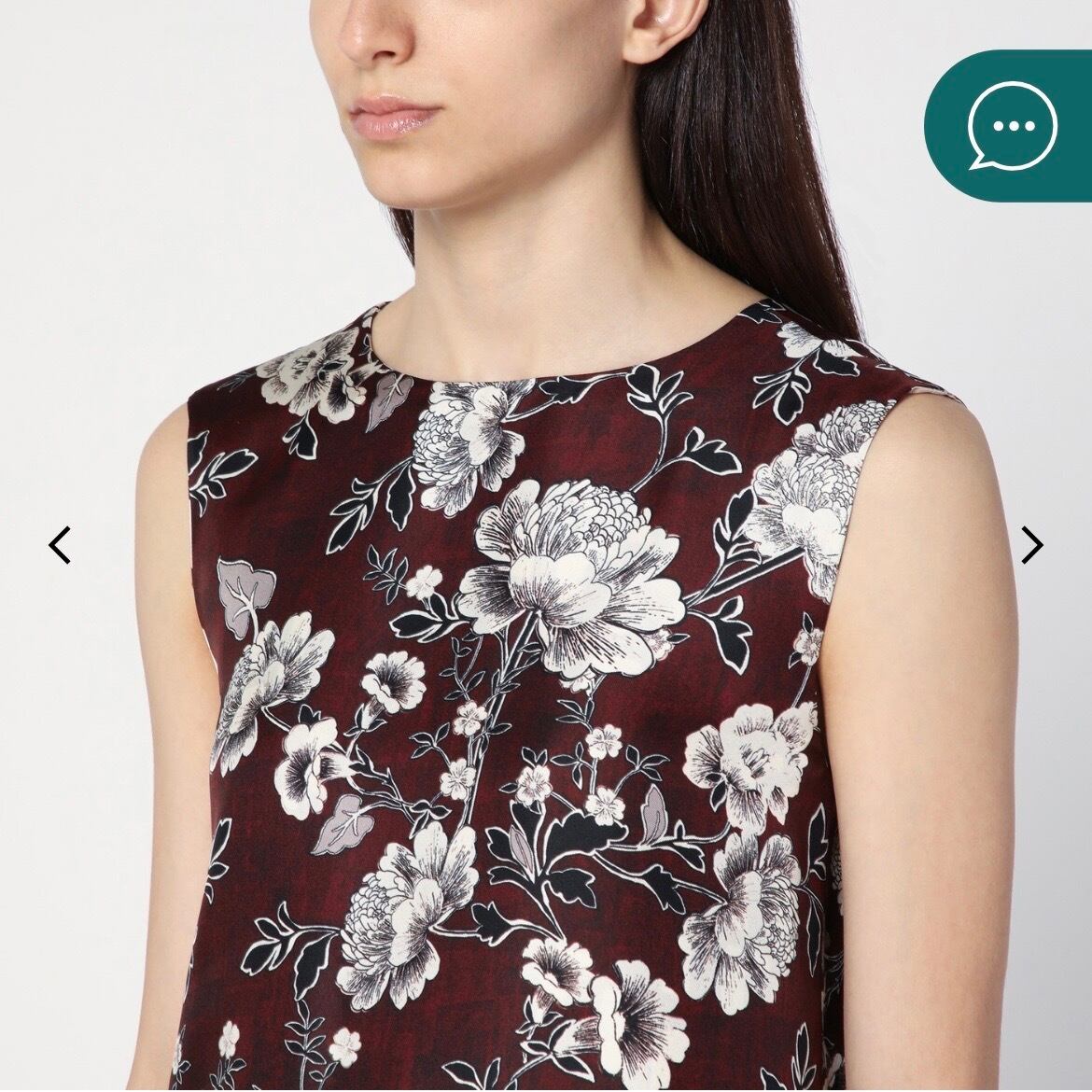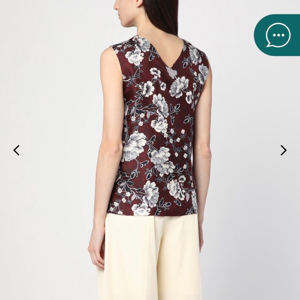 マックスマーラ タイムレスのリバーシブルキャミソールトップ。ボルドーシルクに コントラストの効いた柄が施され、Vネックとストレートヘムが特徴です。