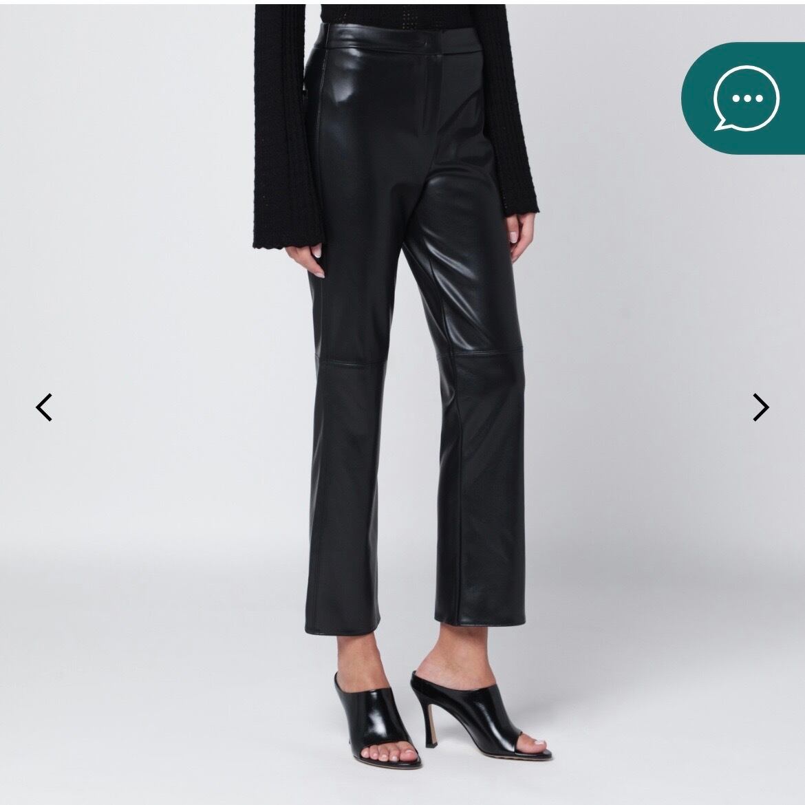 マックスマーラのブラックコーティング生地を使用したパンツ。カットとレザー風の ステッチが施されたフィット感のあるシルエット、背面に2つのポケット、 フック付きジッパー開閉、足首丈のクロップドカットが特徴です。