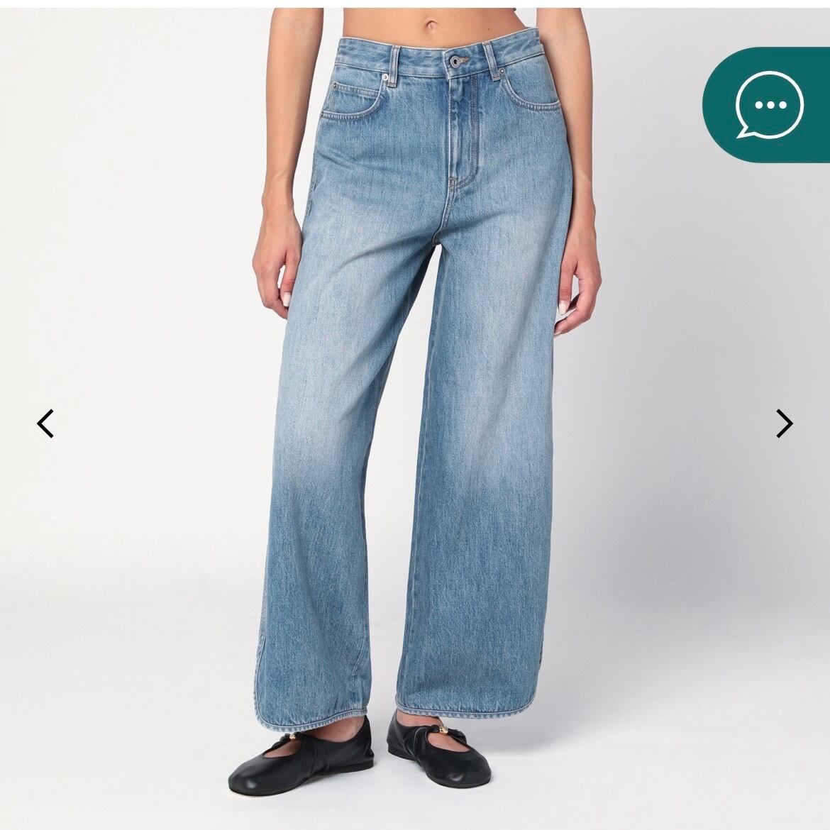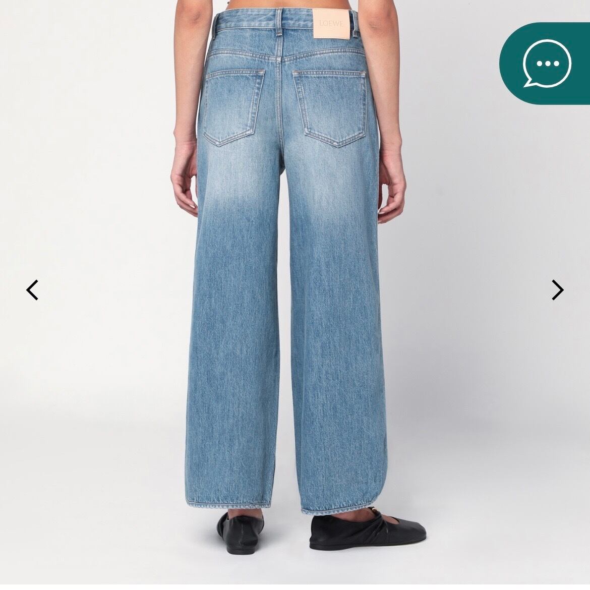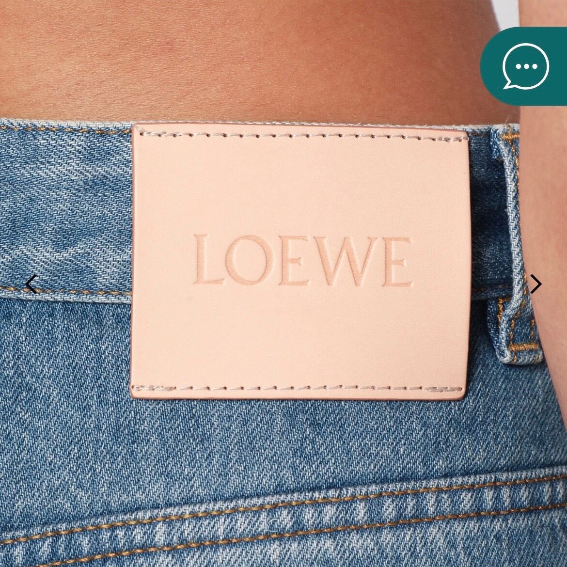 ブルーのコットンデニムを使用したロエベのジーンズ。ボーイフレンドカット、 ベルトループ、5つのポケット、背面にエンボスロゴ入りのレザーラベルが特徴 です。