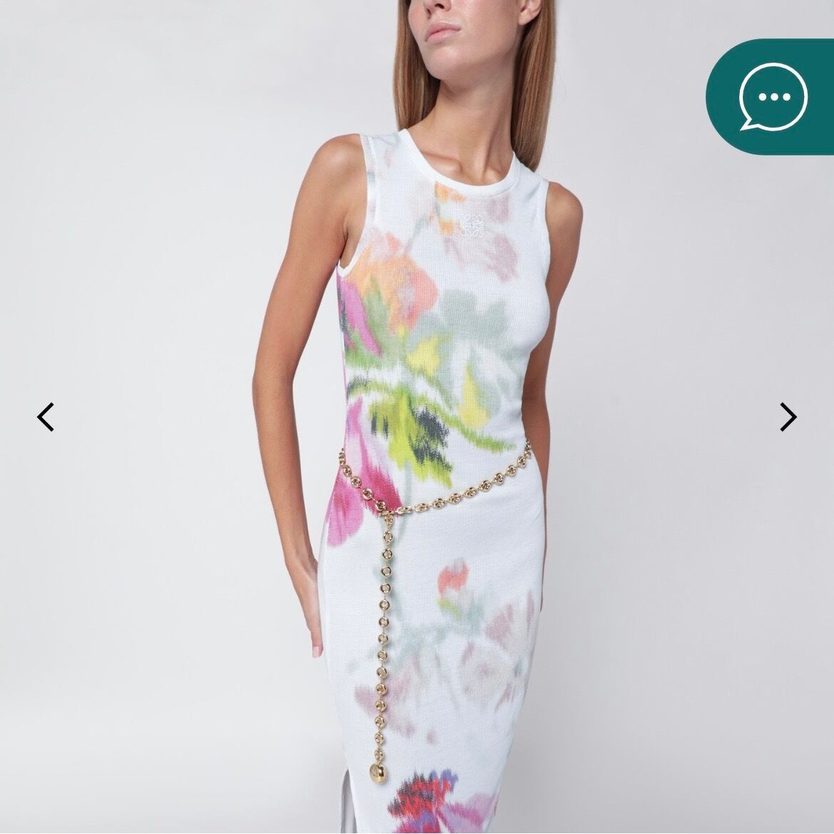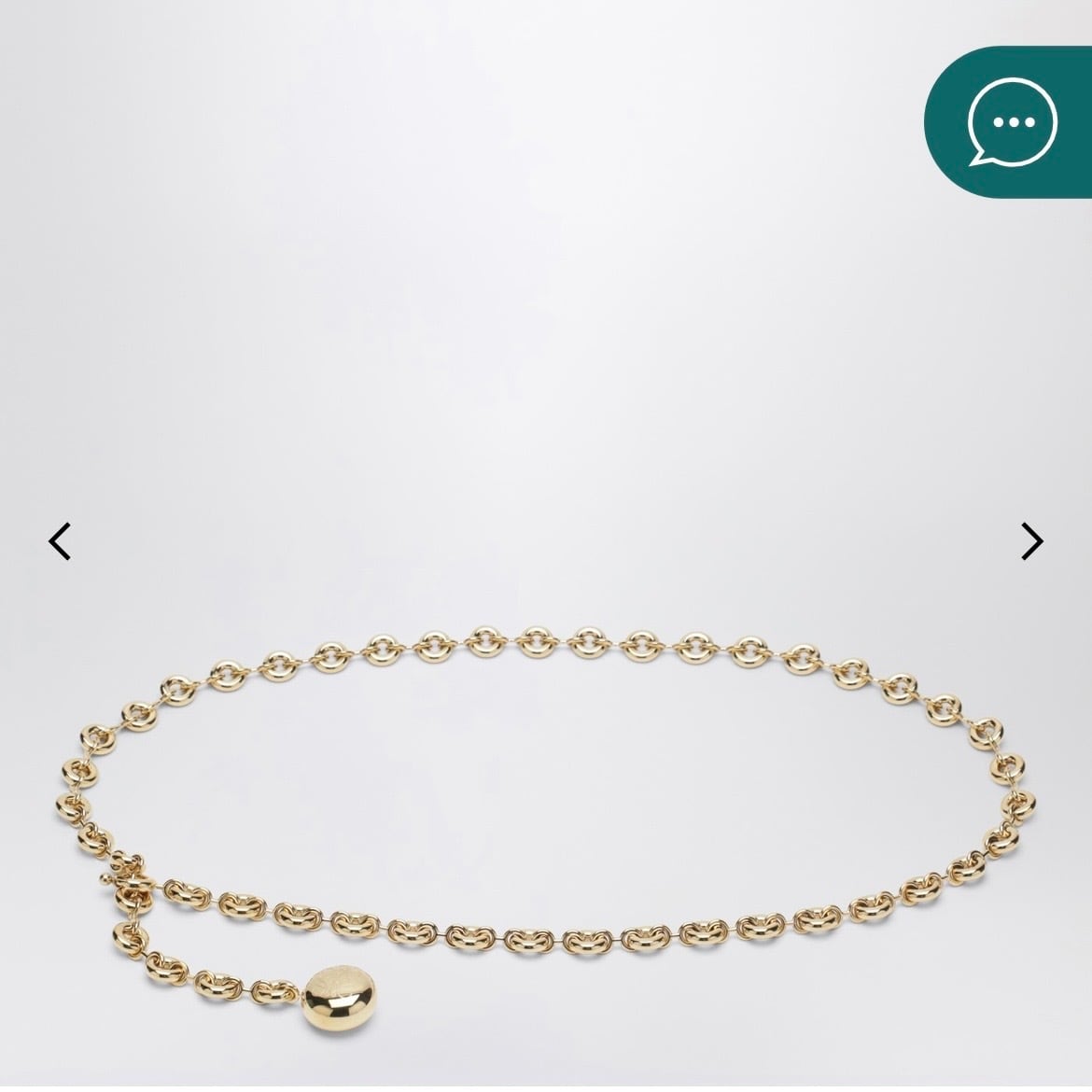 ロエベのゴールドトーンメタルチェーンベルト。フックとアイの留め具と アナグラムペブルのディテールが特徴です。