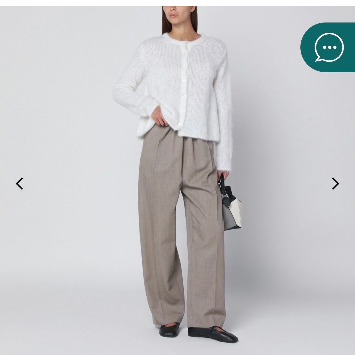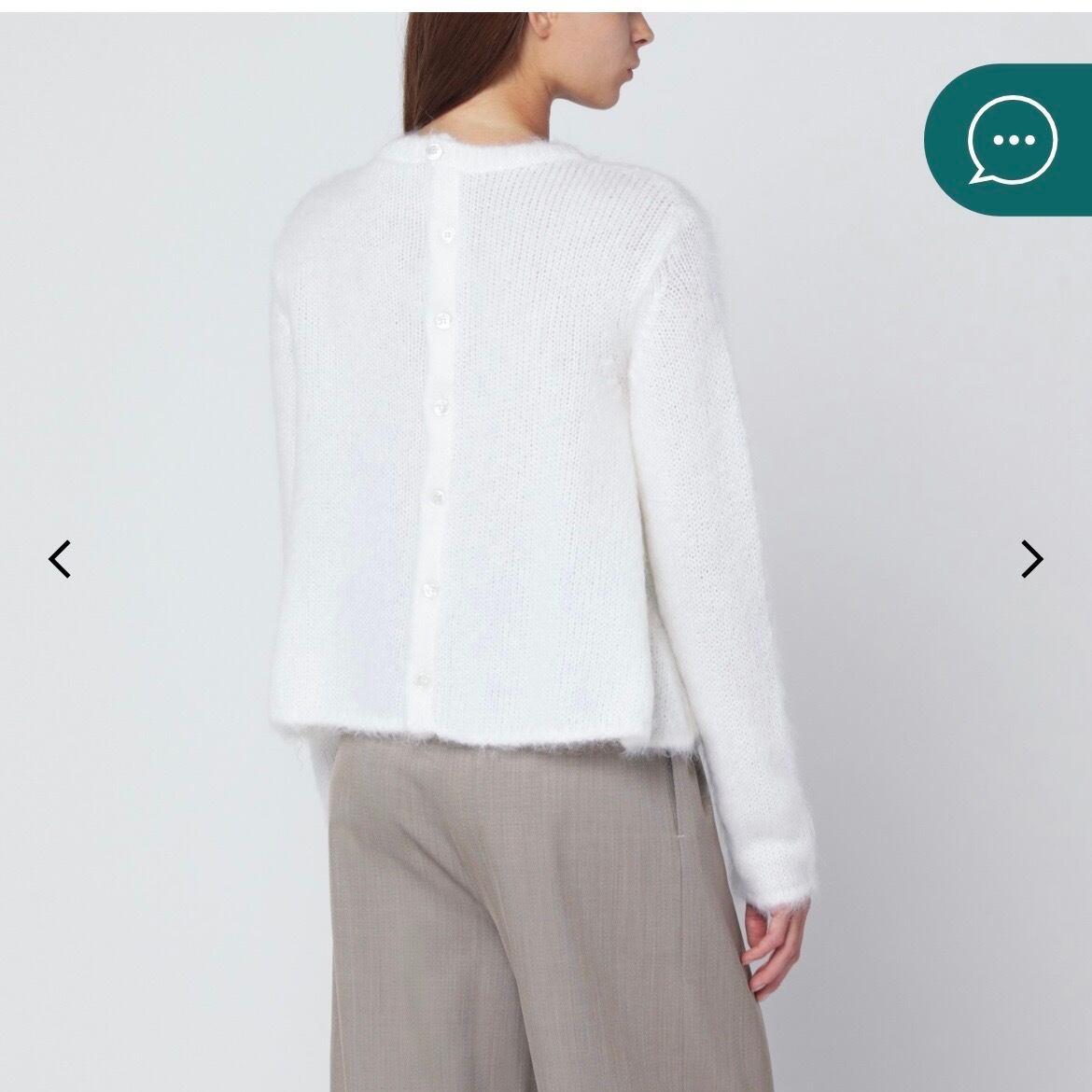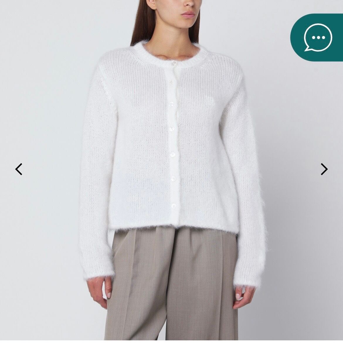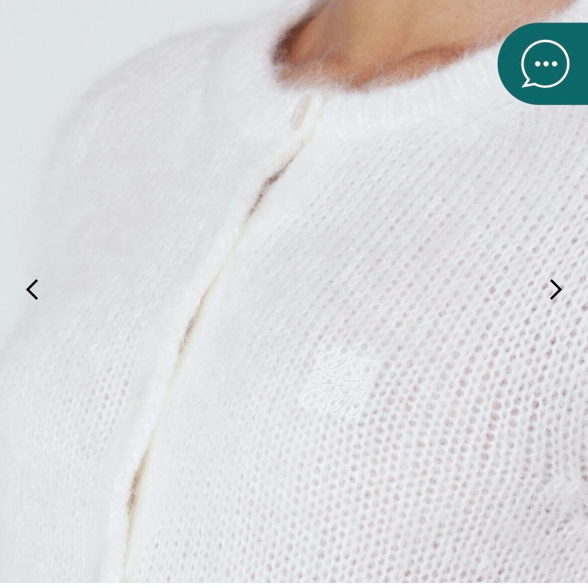 ロエベ ホワイトのモヘア混クルーネックカーディガン。シルエット、フロントとバックのボタン留め、胸にアナグラムの刺繍、レギュラーフィット。