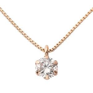 ダイヤモンド ネックレス 0.1ct K18ピンクゴールド 一粒 6本爪 シンプル ダイヤネックレス ペンダント 鑑別カード付き