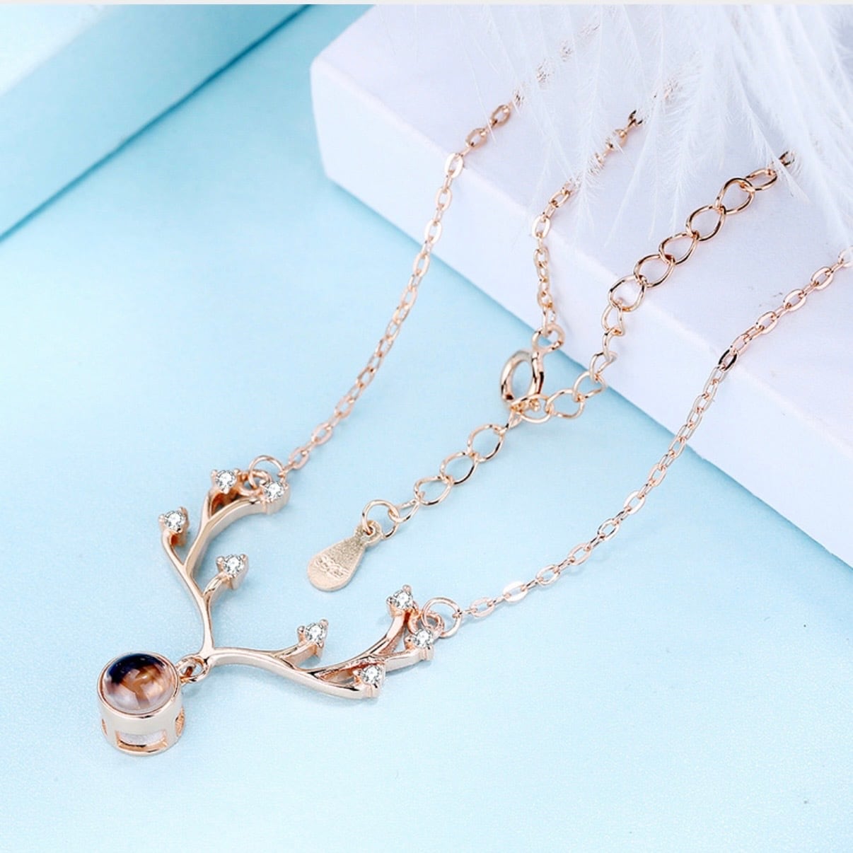 鹿角ネックレス レディース ピンクゴールド ハートストーン ペンダント 可愛い おしゃれ 韓国風 上品 ギフト プレゼント 人気