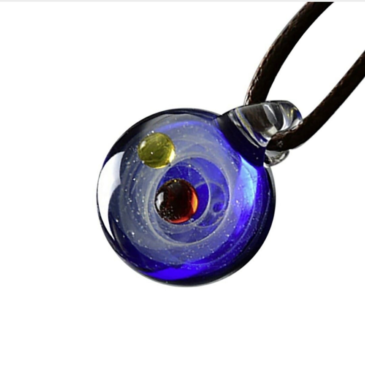 まるで銀河がそのまま宿ったような、神秘的なガラスアートペンダント。